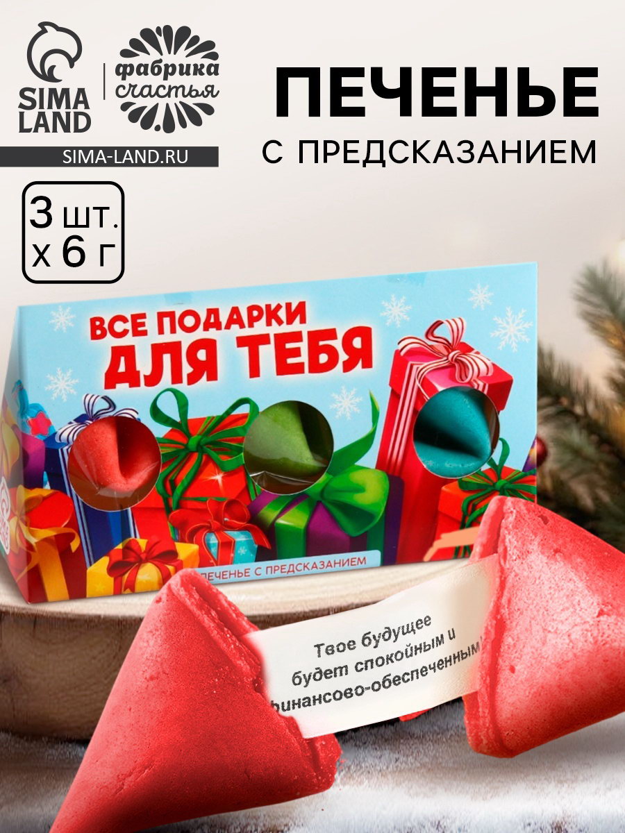 Печенье с предсказаниями в коробке "Подарки для тебя", 3 шт., Фабрика счастья, Россия