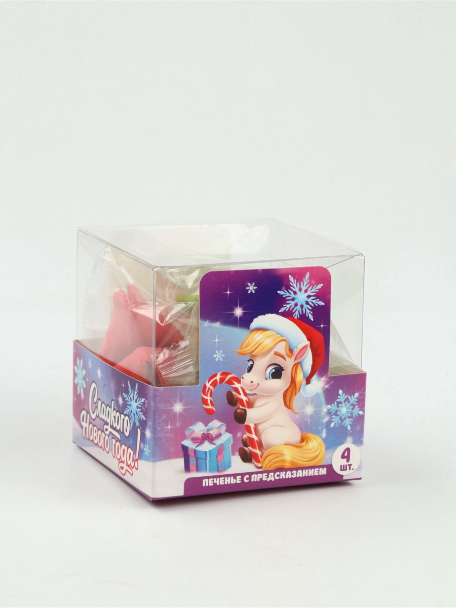 Печенье с предсказанием цветное в PVC-коробке "Сладкого нового года", 4 шт., Фабрика счастья, Россия