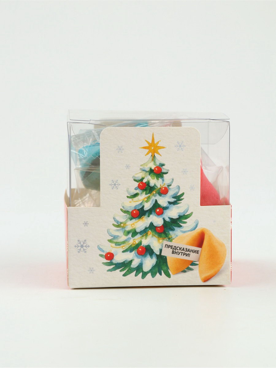 Печенье с предсказанием цветное в PVC-коробке "Улыбок в новом году", 4 шт., Фабрика счастья, Россия
