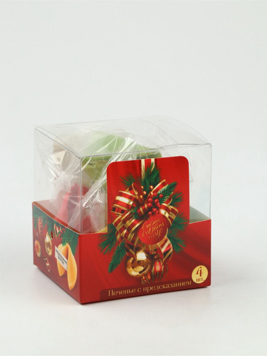 Печенье с предсказанием цветное в PVC-коробке "С новым годом", 4 шт., Фабрика счастья, Россия