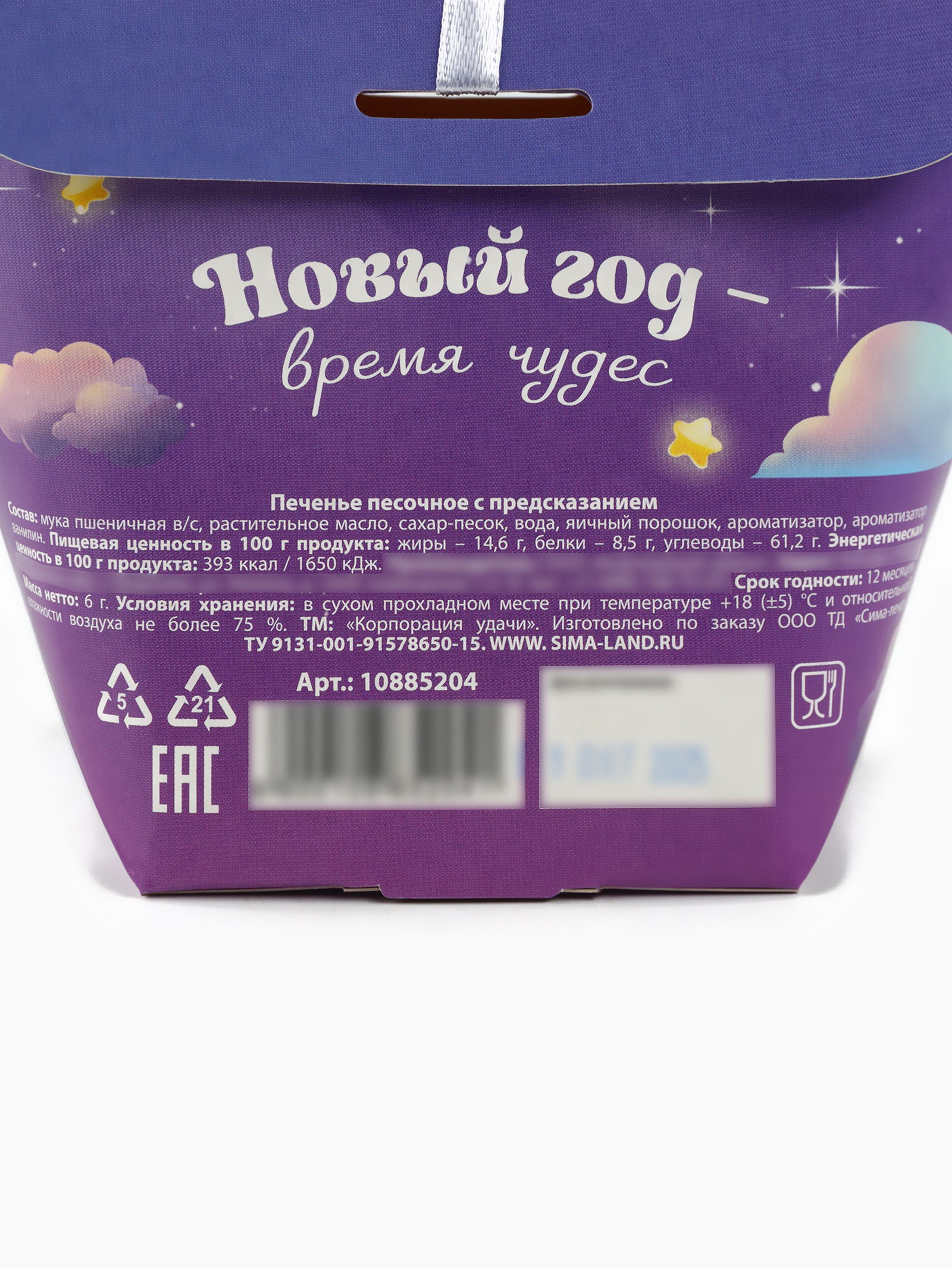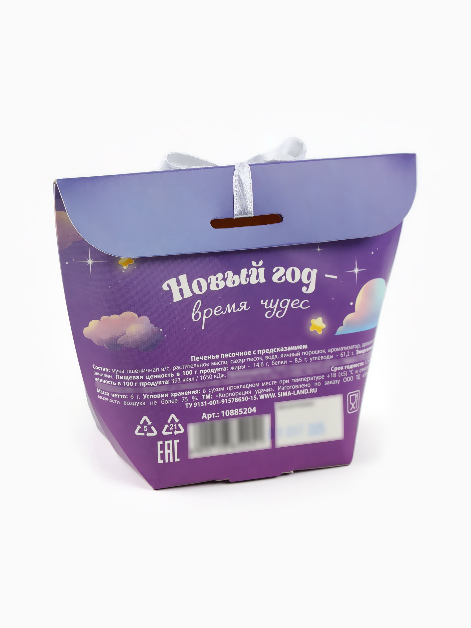 Запрет реализации по сегментам: 00000000266, 00000000593 Размер упаковки: 5.5 x 10 x 12.5 см. tnved: 1806321000 Новогодняя коллекция: Символ года 2026 Тематика праздника: Новый год Вид упаковки: Подарочная коробка Вес нетто, г: 6 Тип: Песочное Вид: С предсказанием Адресат: Без адресата Тематика подарка: Продукты питания Для кого: Унисекс Цвет: Сиреневый Энергетическая ценность, ккал: 393 Белки, г: 8.5 Жиры, г: 14.6 Символ года: Символ года 2026 (Лошадь) Углеводы, г: 61.2 Погрузитесь в магию предновогоднего ожидания вместе с печеньем с предсказаниями! Это не просто вкусное печенье это настоящая часть праздничной сказки. Каждая печенька скрывает маленькое предсказание на будущее, наполняя ваш праздник ожиданием чудес и приятных сюрпризов. Тонкое тесто и яркое украшение создают атмосферу тепла и уюта, а каждое предсказание добавит немного волшебства и вдохновения в ваши праздничные дни. Идеальное угощение для встречи Нового года в кругу семьи и друзей или оригинальный сюрприз для тех, кто ценит хорошее настроение и магию чудес. Пусть это печенье станет частью вашего новогоднего волшебства напоминанием о том, что чудеса случаются, и что каждый новый год приносит с собой новые надежды и счастливые открытия! ПРИ ОФОРМЛЕНИИ ЗАКАЗА, ПРОСИМ ЗАПРАШИВАТЬ АКТУАЛЬНЫЕ СРОКИ ГОДНОСТИ У МЕНЕДЖЕРА | ||