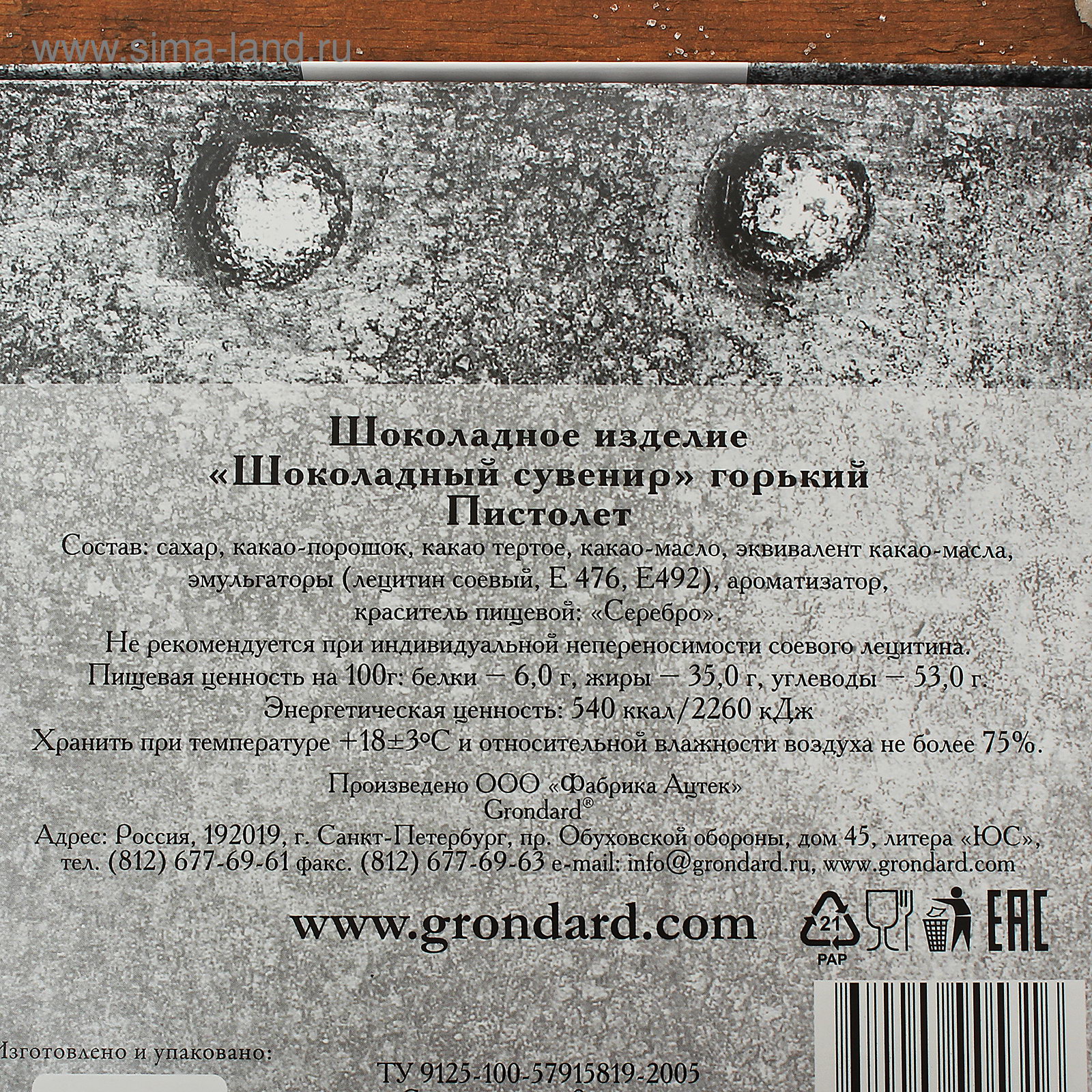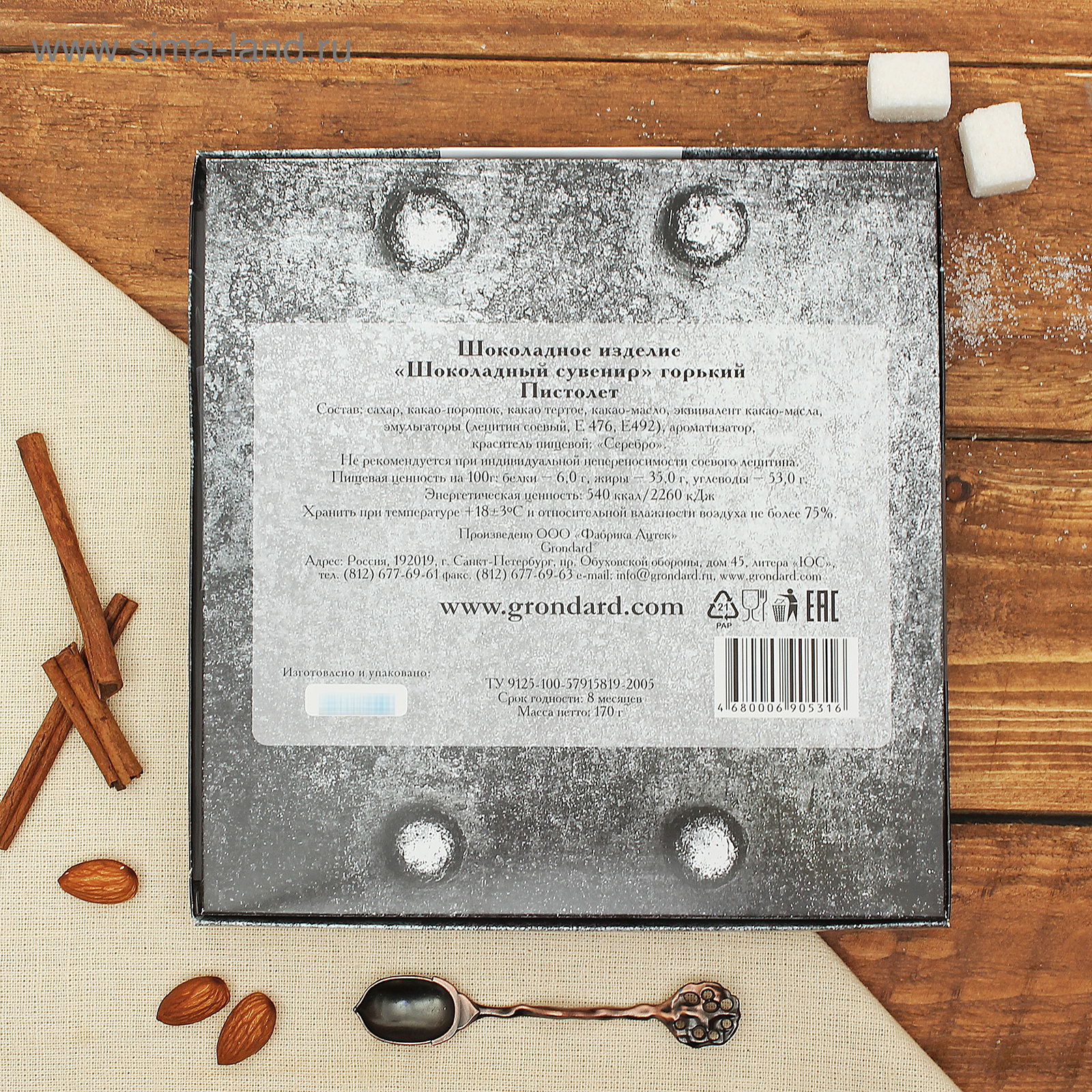 Шоколадное изделие "Шоколадный сувенир", горький "Пистолет", 170 г, Grondard, Россия