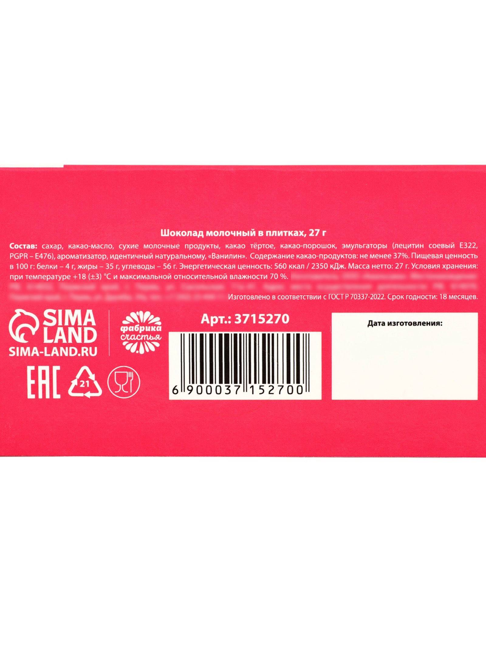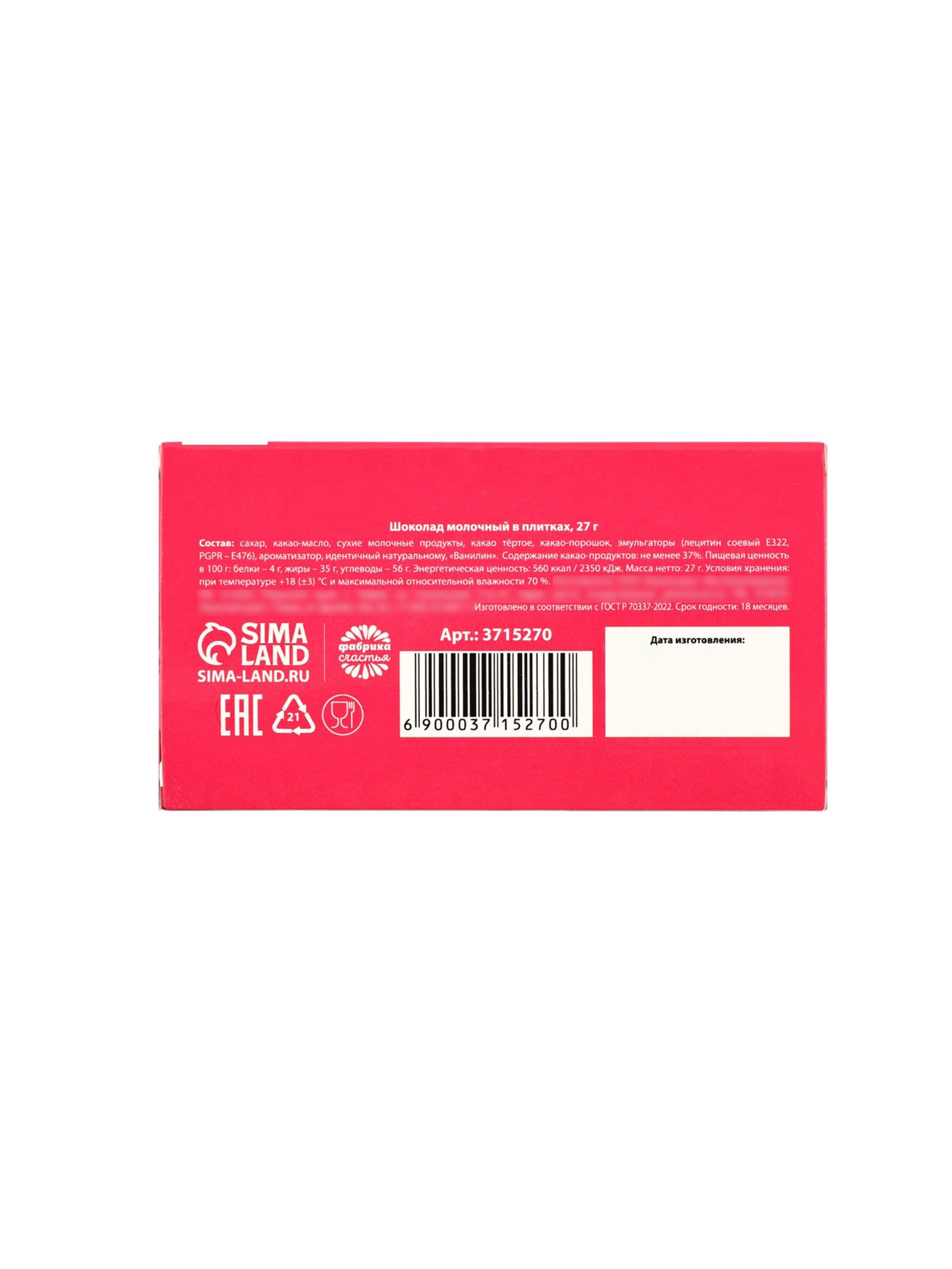 Шоколад молочный "От розовых соплей", 27 г, Фабрика счастья, Россия