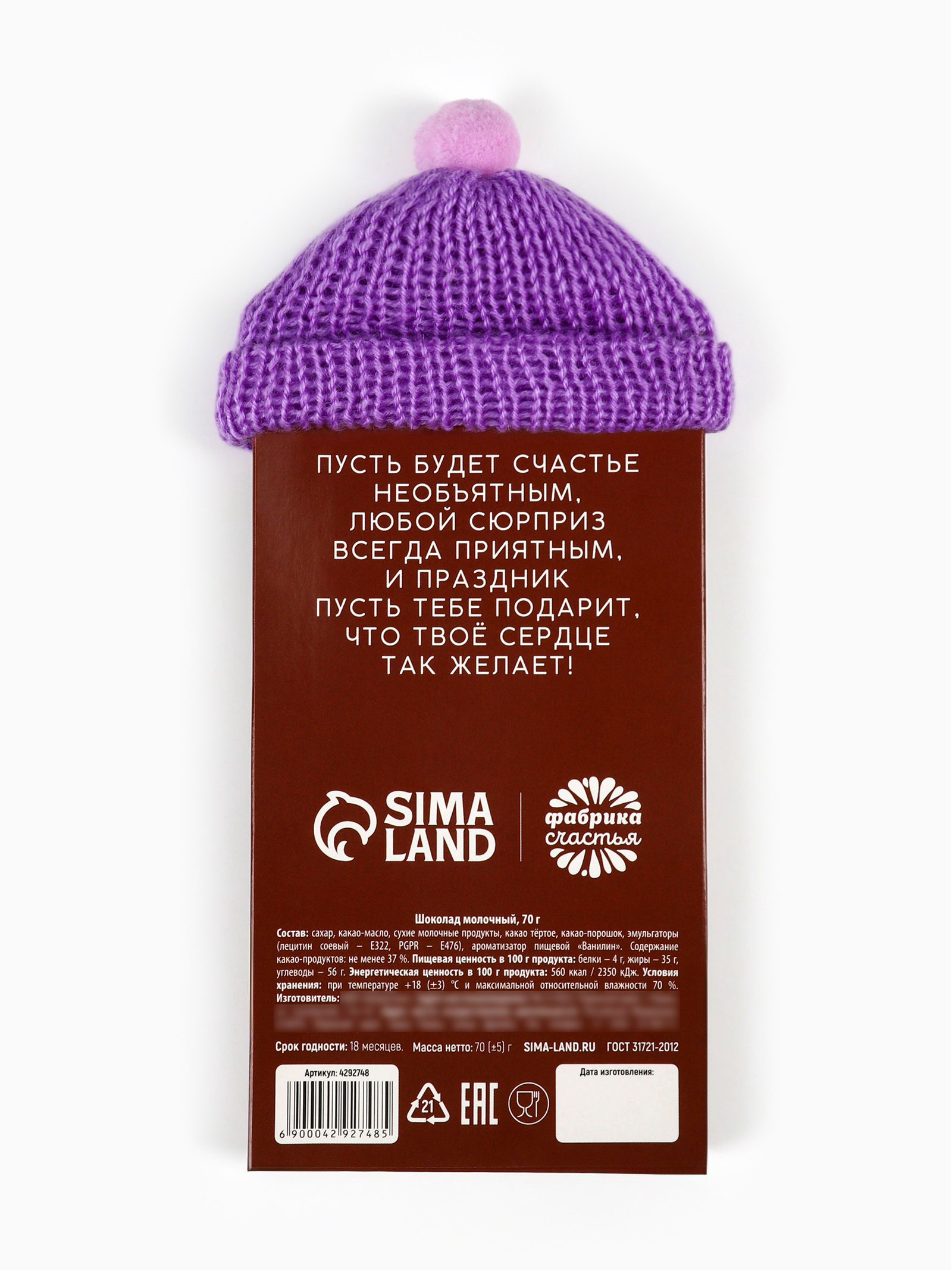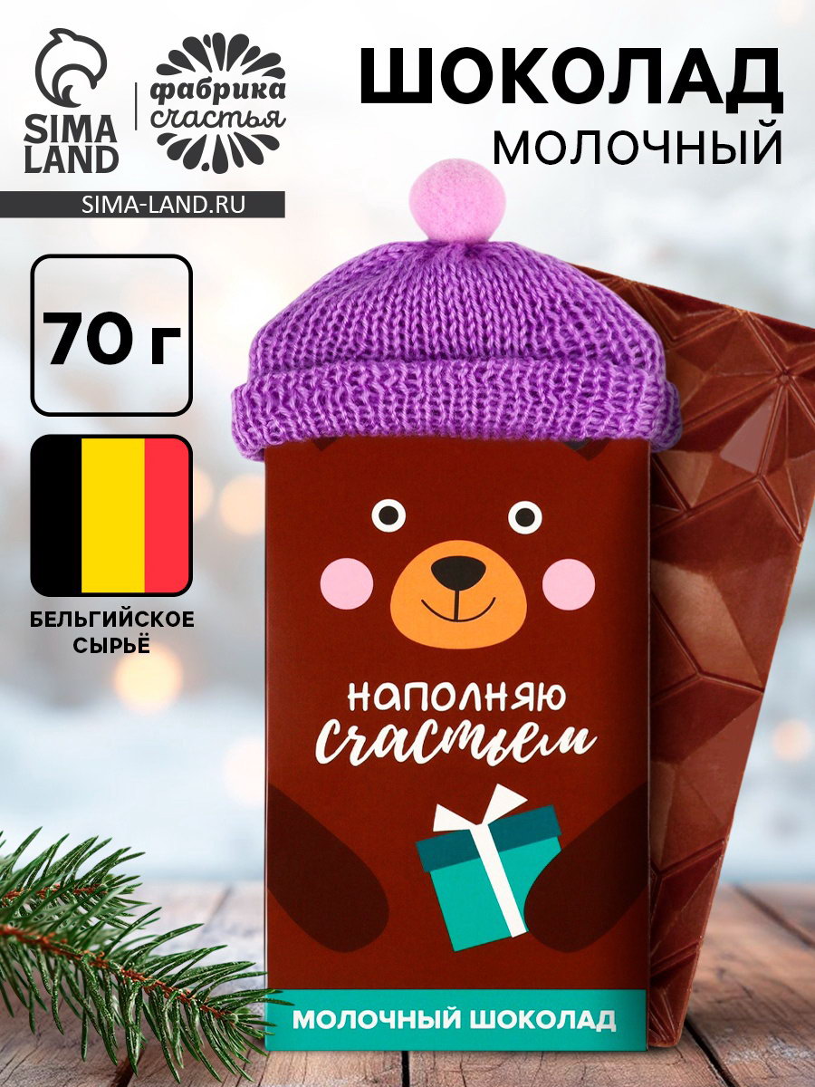 Шоколад новогодний молочный "Наполняю счастьем": в шапочке, 70 гр, Фабрика счастья, Россия