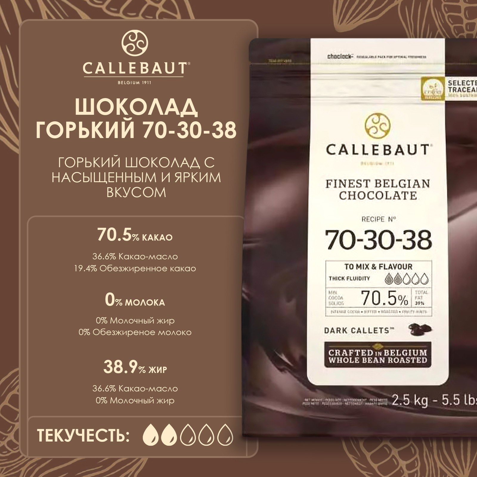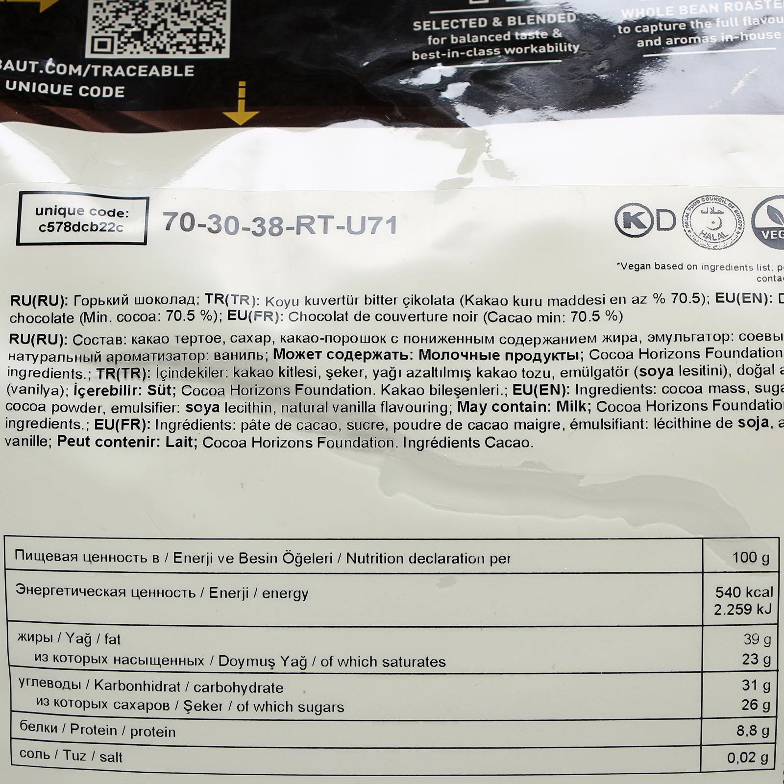 Шоколад кондитерский тёмный горький 70.5% таблетированный, 2.5 кг, CALLEBAUT, Бельгия
