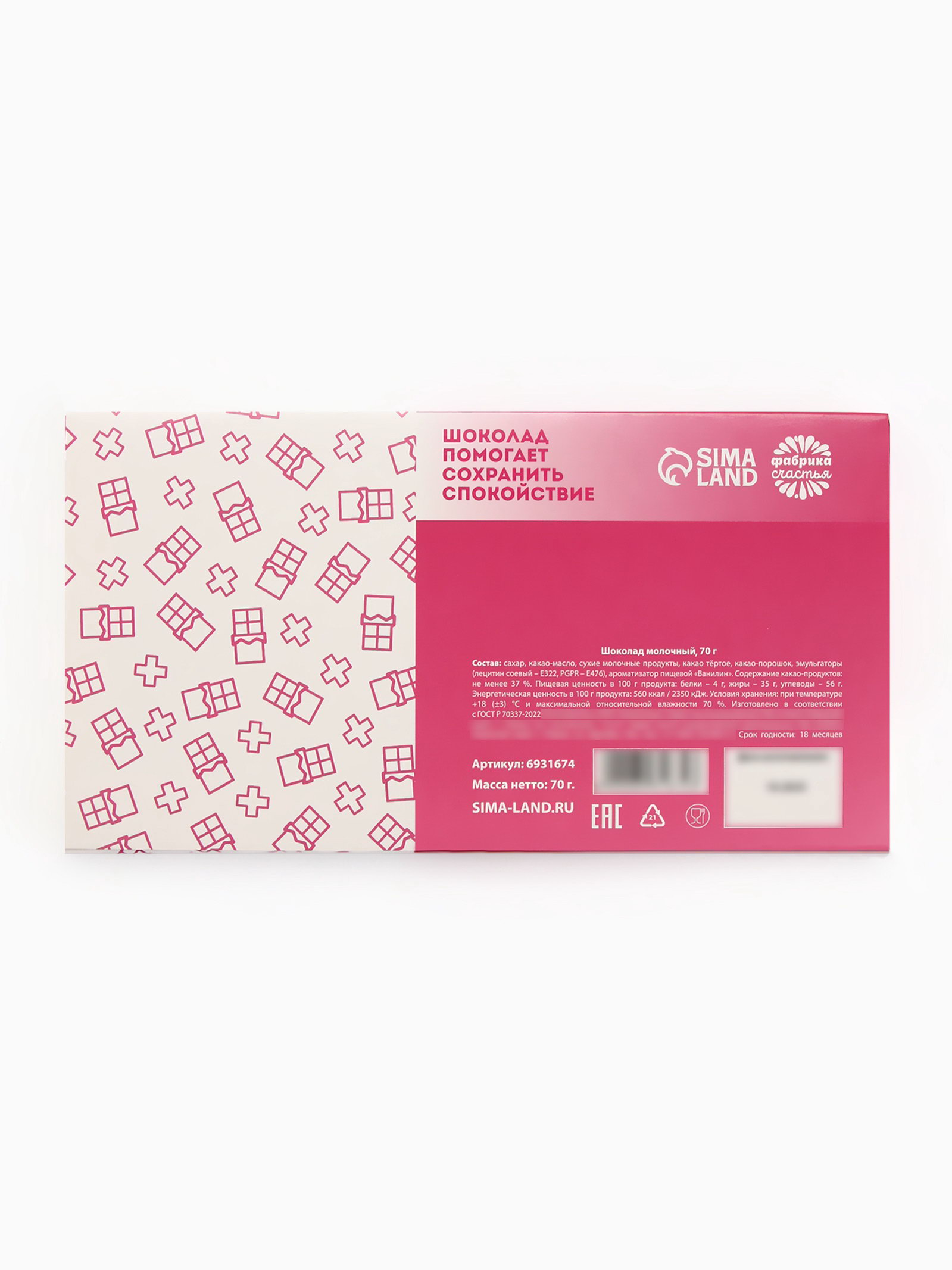 Шоколад молочный "Антиистерин", 70 г, Фабрика счастья, Россия