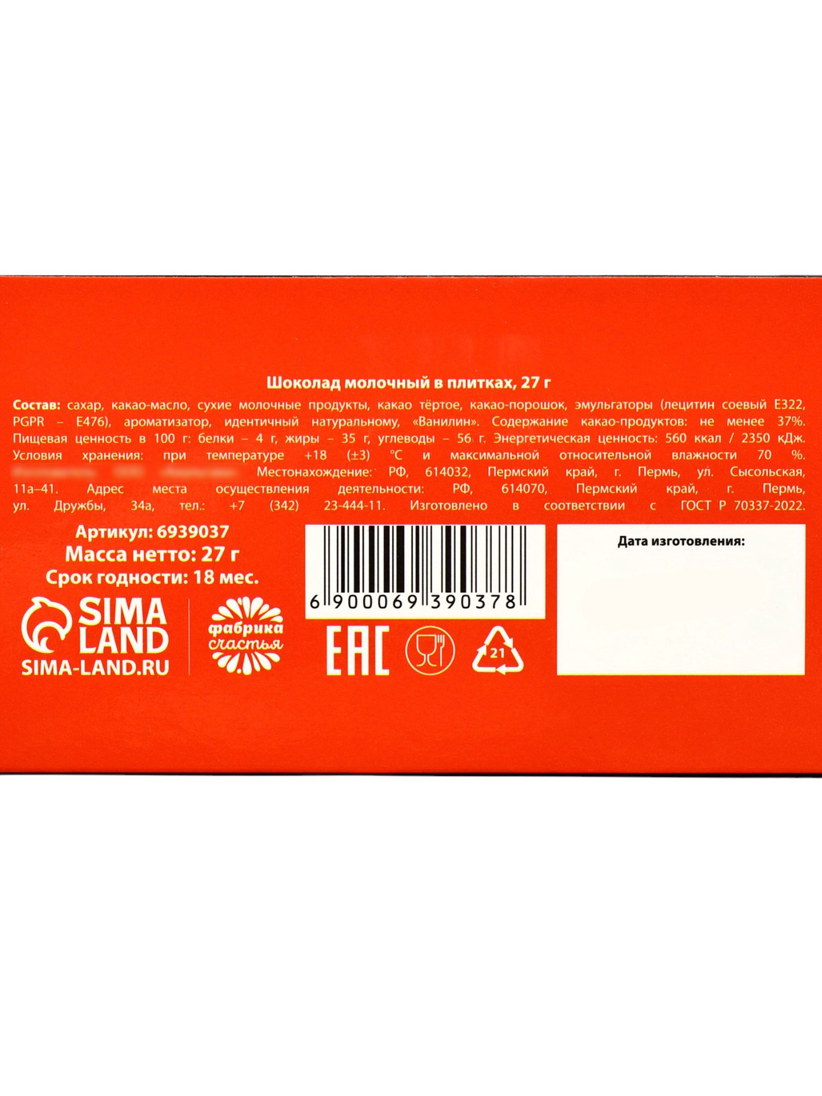 Шоколад молочный "Терпение и труд", 27 гр, Фабрика счастья, Россия