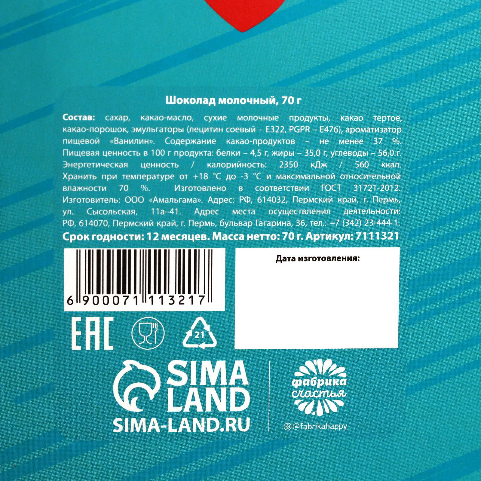Шоколад молочный "Лучшему медработнику", 70 гр, Фабрика счастья, Россия