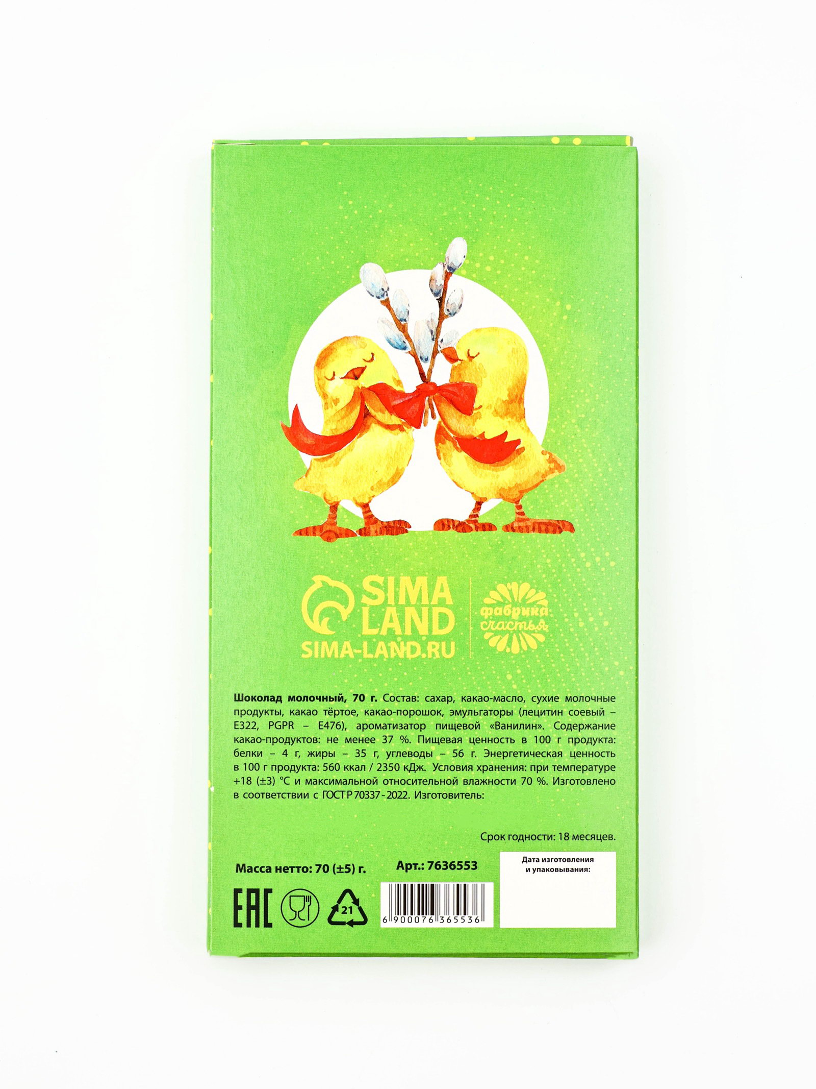 Шоколад "Светлой Пасхи!" молочный, 70 гр, Фабрика счастья, Россия