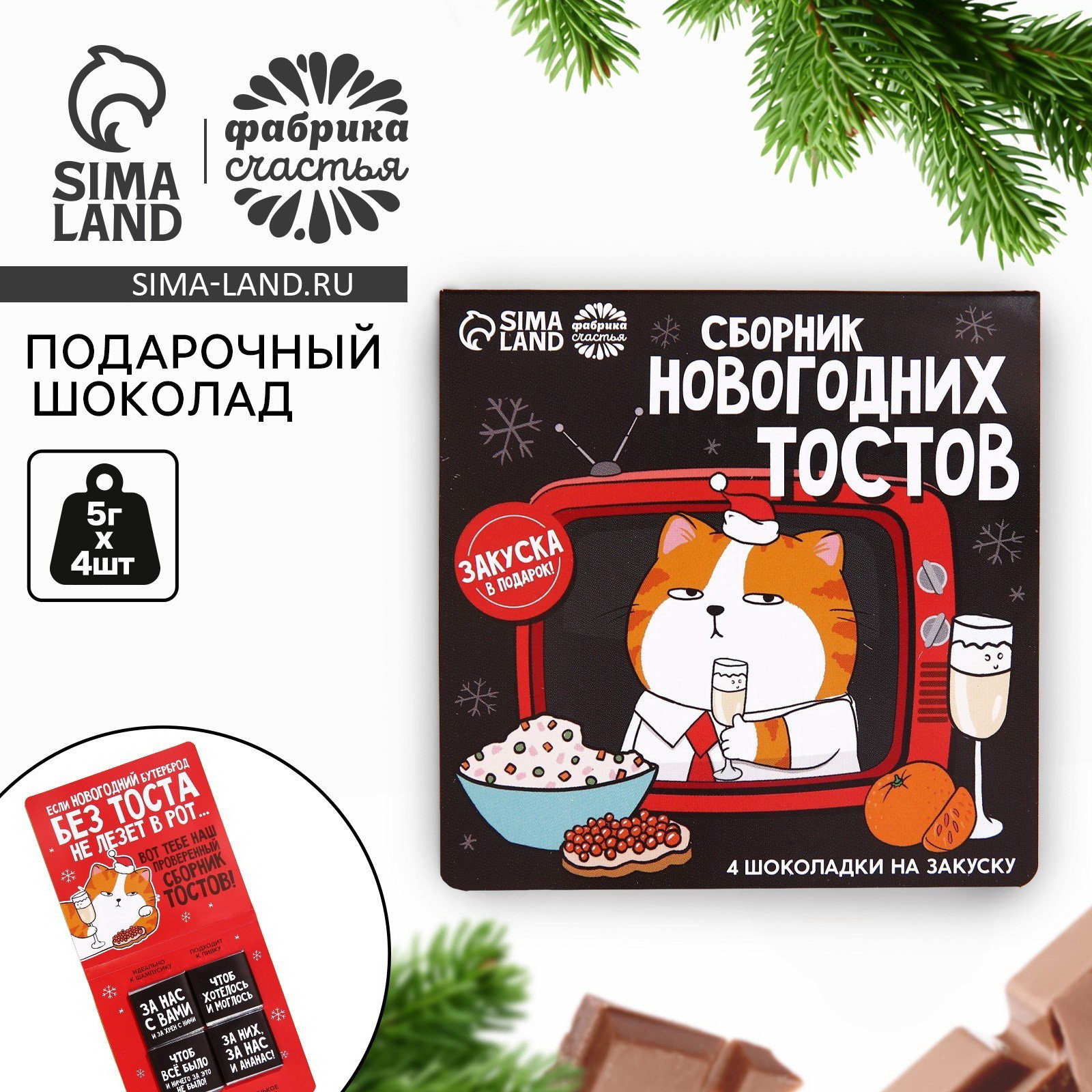 Шоколад мини "Сборник новогодних тостов", 5 г x 4 шт., Фабрика счастья, Россия