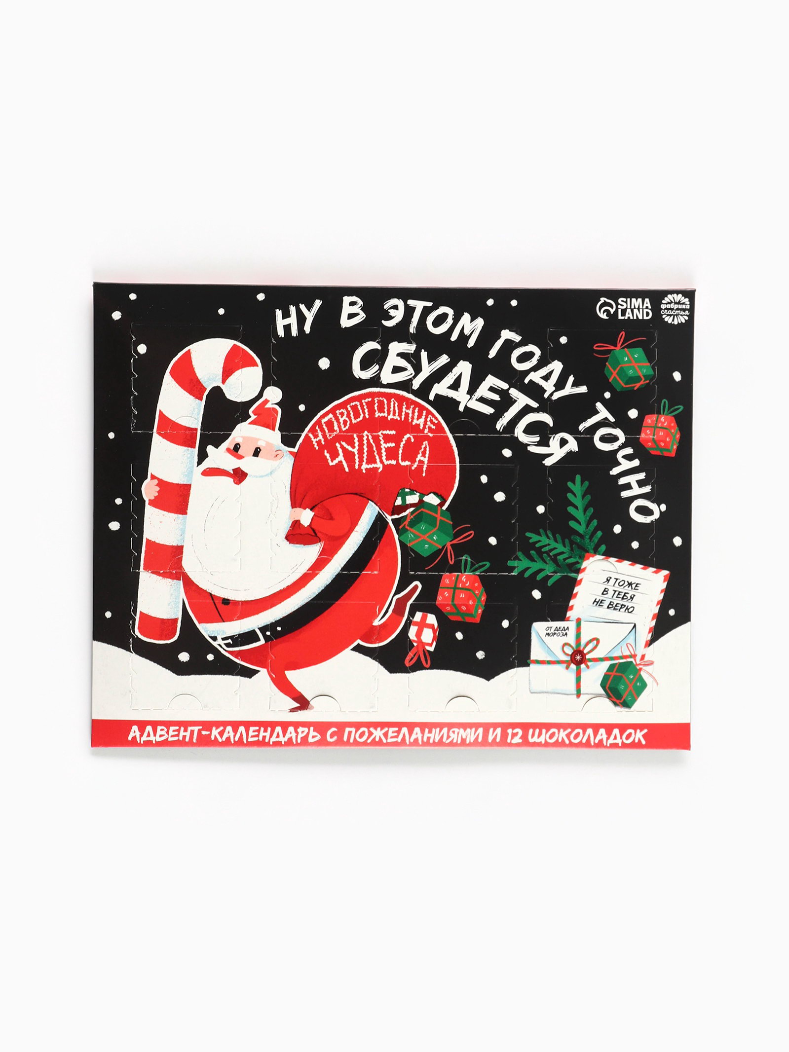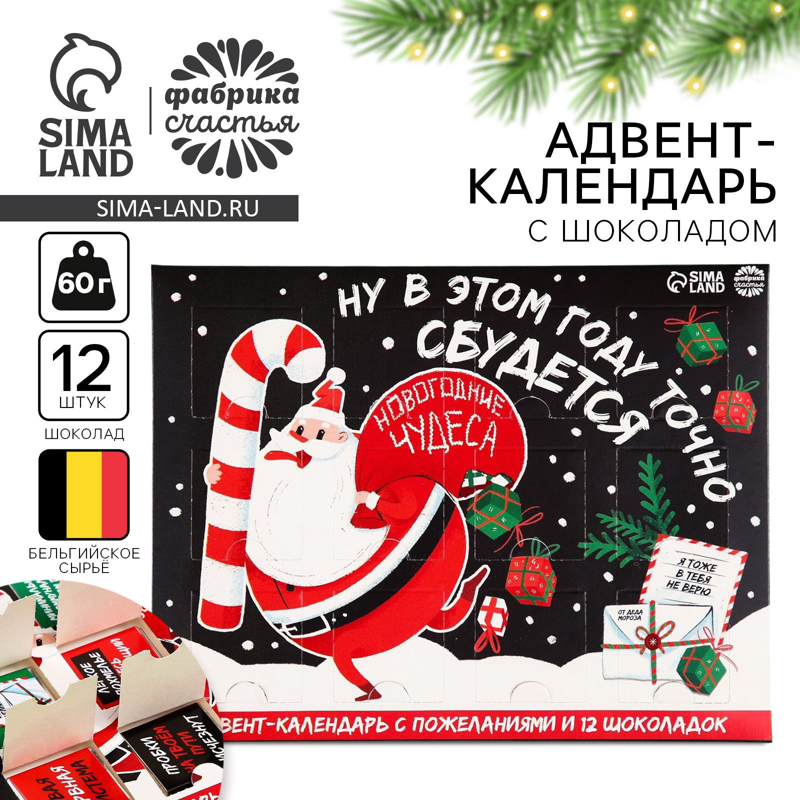 Адвент календарь "Новогодние чудеса", мини шоколадки 12 шт. по 5 гр, Фабрика счастья, Россия