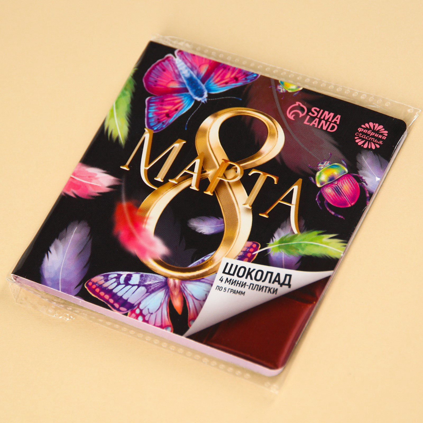 Шоколад молочный "8 марта", 5 гр x 4 шт., Фабрика счастья, Россия