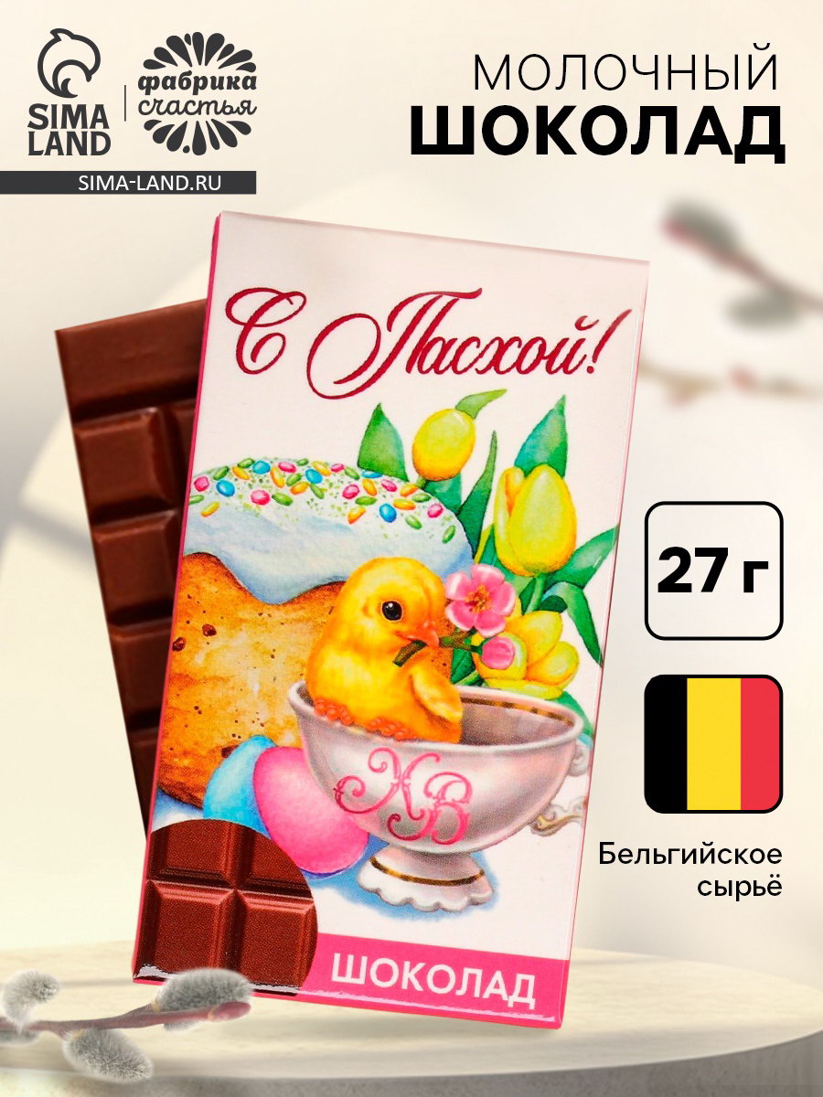 Шоколад молочный "С Пасхой!", 27 г, Фабрика счастья, Россия