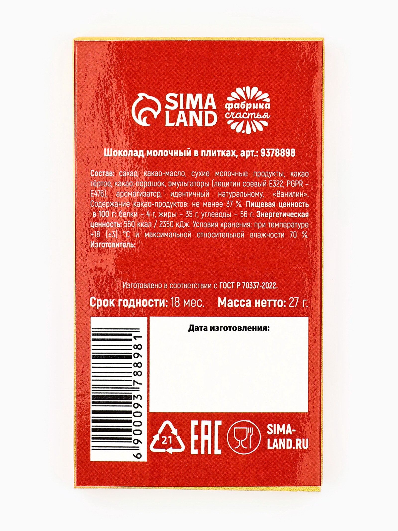 Шоколад молочный "Светлой Пасхи!", 27 г, Фабрика счастья, Россия