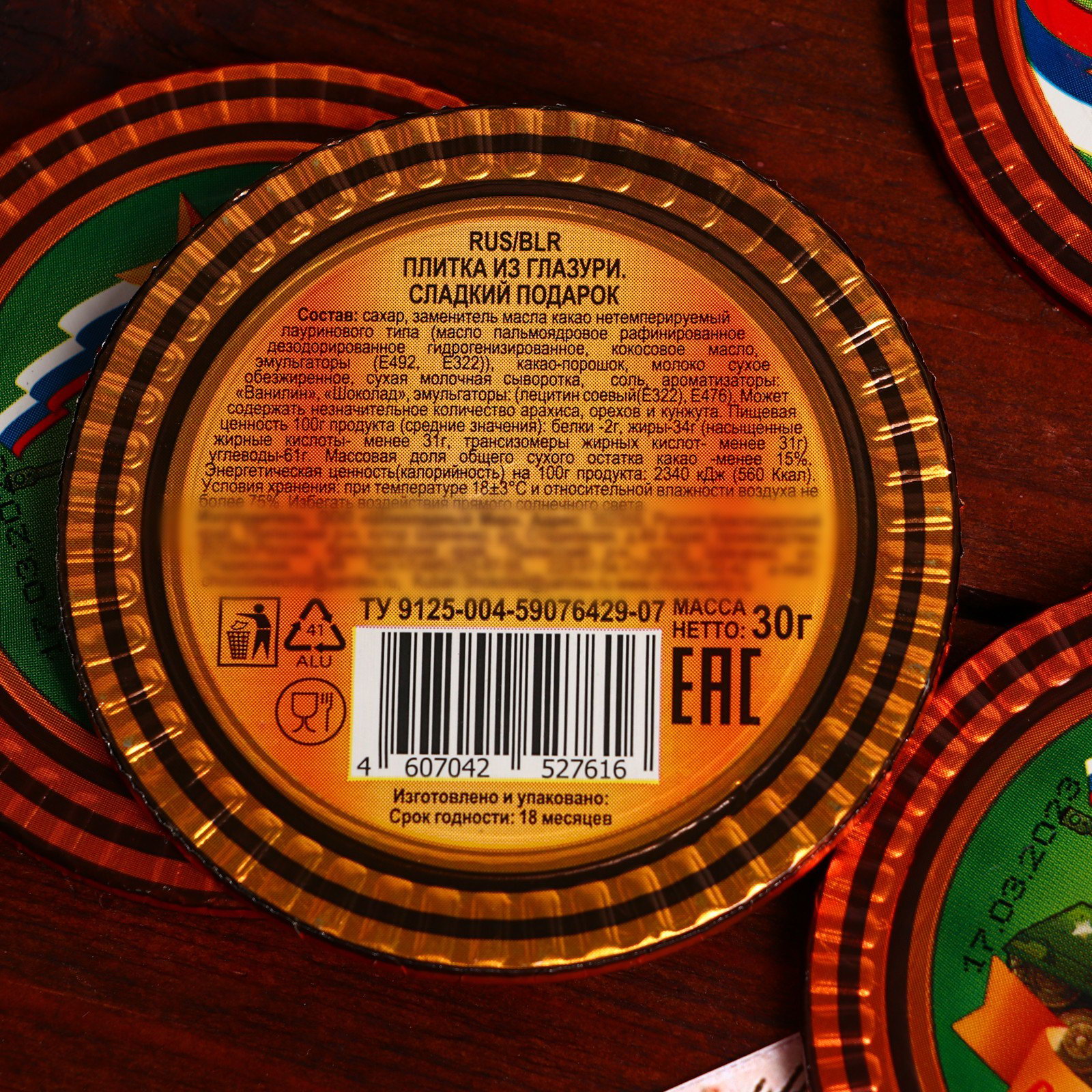 Шоколадная медаль "С праздником Победы", кондитерская глазурь, 30 г, Россия