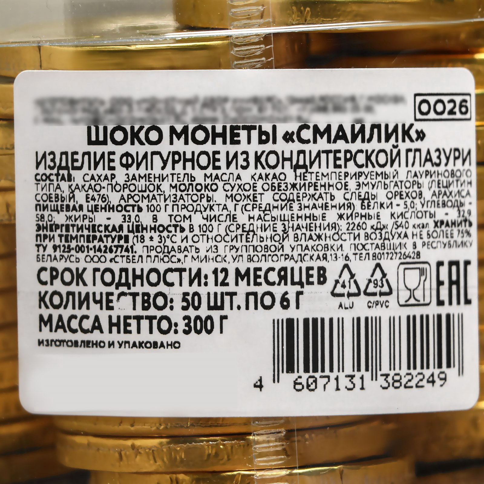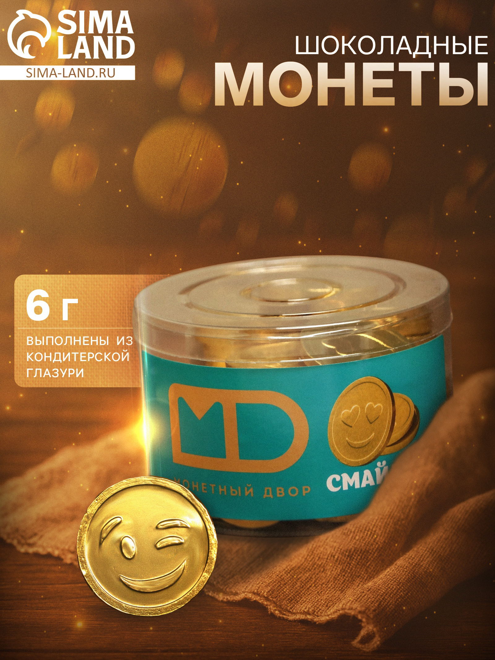 Монеты шоколадные "Смайлик", в банке, 6 г, Монетный Двор, Россия