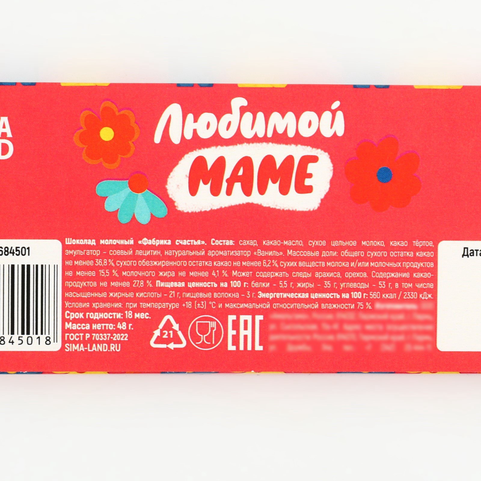 Шоколад мини молочный "Маме", 48 г, Фабрика счастья, Россия
