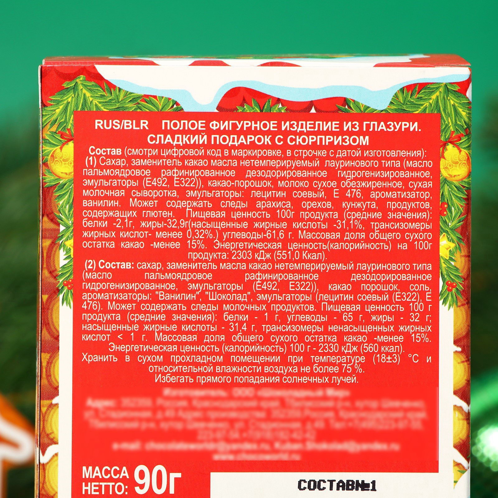 Тематика праздника: Новый год, Рождество Новогодняя коллекция: Новый год, Рождество Размер упаковки: 9 x 9 x 13 см. Тематика: Новогодняя Тематика: Новогодняя tnved: 1806909000 Продукты: Да Температурное ограничение: Нет Форма: Фигурка Вид шоколада: Кондитерская глазурь Добавки: Без добавок Вес нетто, г: 90 Энергетическая ценность, ккал: 560 Жиры, г: 34 Углеводы, г: 61 Белки, г: 2 Символ года: Нет Шоколад в яркой и красочной упаковке, в виде яйца - это необычный, оригинальный сладкий подарок, который дарит неповторимые эмоции! Вам больше не нужно ломать голову над идеей подарка, мы все придумали за Вас. Праздничный дизайн: уже с первого взгляда вас ожидает порция новогоднего и праздничного вдохновения. Это отличная идея презента на Новый год. От шоколада просто невозможно оторваться. Как тут не станешь сладкоежкой! Условия хранения: при температуре 18±3℃ и относительной влажности воздуха не более 75%. Избегать воздействия прямого солнечного света. | ||
