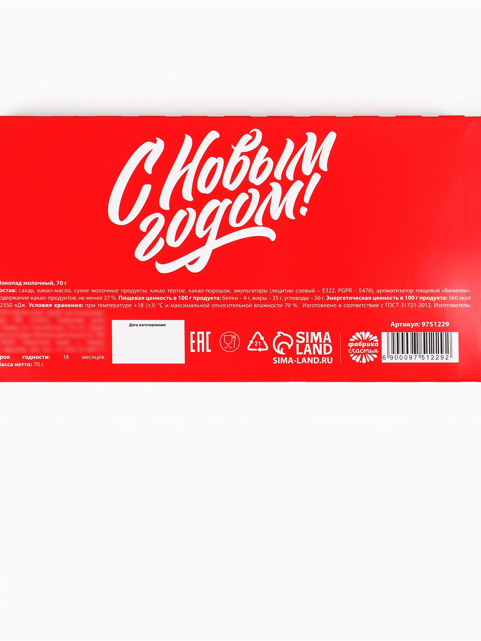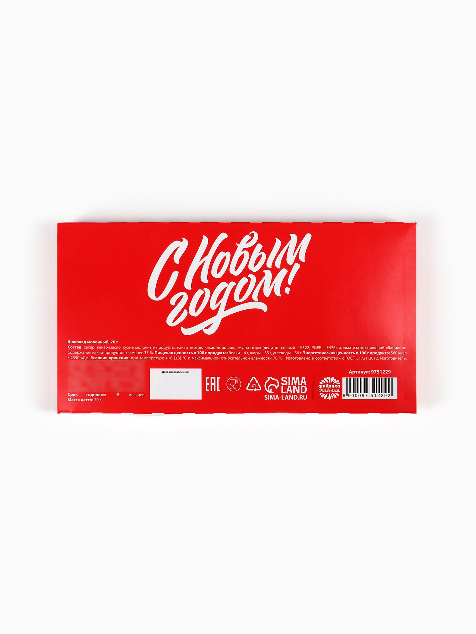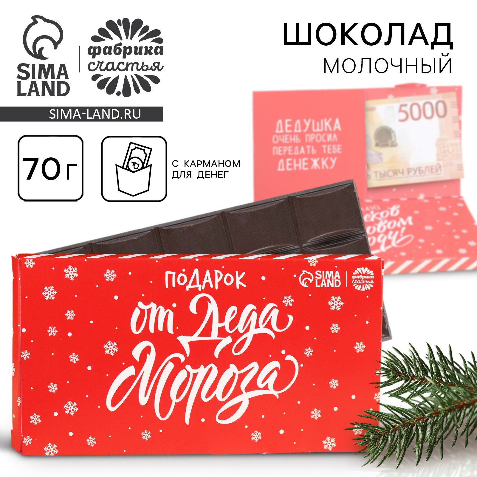 Шоколад новогодний молочный "От Деда Мороза" в открытке с кармашком для денег, 70 г, Фабрика счастья, Россия