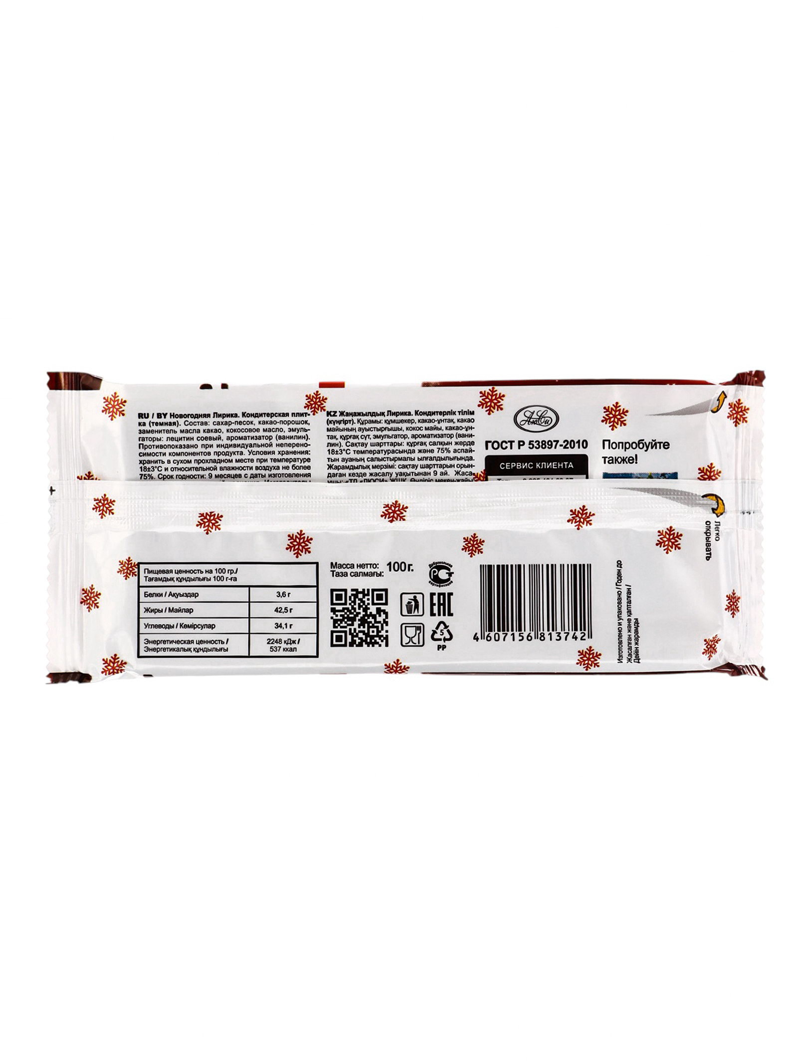Создайте атмосферу праздника Эта плитка станет прекрасным дополнением к новогоднему столу, изысканным подарком для ценителей качественного шоколада или тёплым акцентом рождественского вечера. Наслаждайтесь моментом с чашкой ароматного чая или кофе подарите себе праздник в каждой дольке. | ||