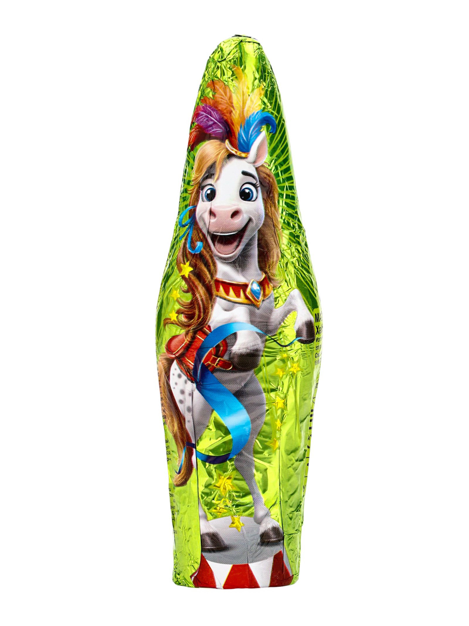 Тематика праздника: Новый год, Рождество Новогодняя коллекция: Новый год, Рождество, Символ года 2026 Размер упаковки: 4.5 x 2.5 x 14 см. Продукты: Да tnved: 1806909000 Температурное ограничение: Нет Энергетическая ценность, ккал: 574.7 Вес нетто, г: 40 Жиры, г: 36.8 Белки, г: 3.2 Углеводы, г: 57.7 Форма: Фигурка Вид шоколада: Кондитерская глазурь Символ года: Символ года 2026 (Лошадь) Шоколадная фигурка лошади создаёт новогоднее настроение и становится съедобным сувениром. Кондитерская глазурь сохраняет чёткие очертания символа 2026 года, превращая шоколад в небольшой праздничный подарок. Фигурка массой 40 г подходит для украшения праздничного стола. Особенности