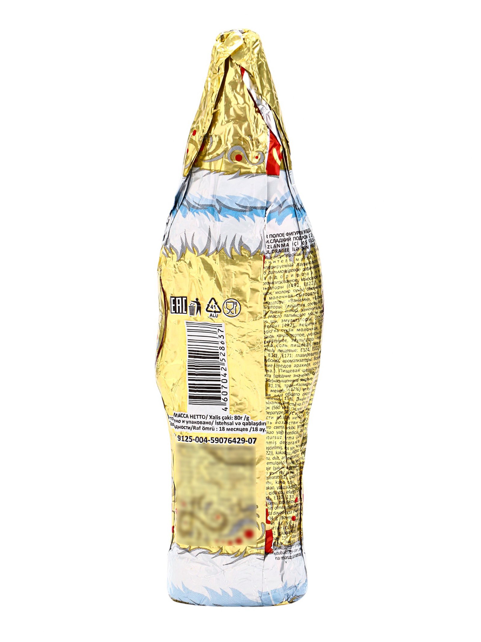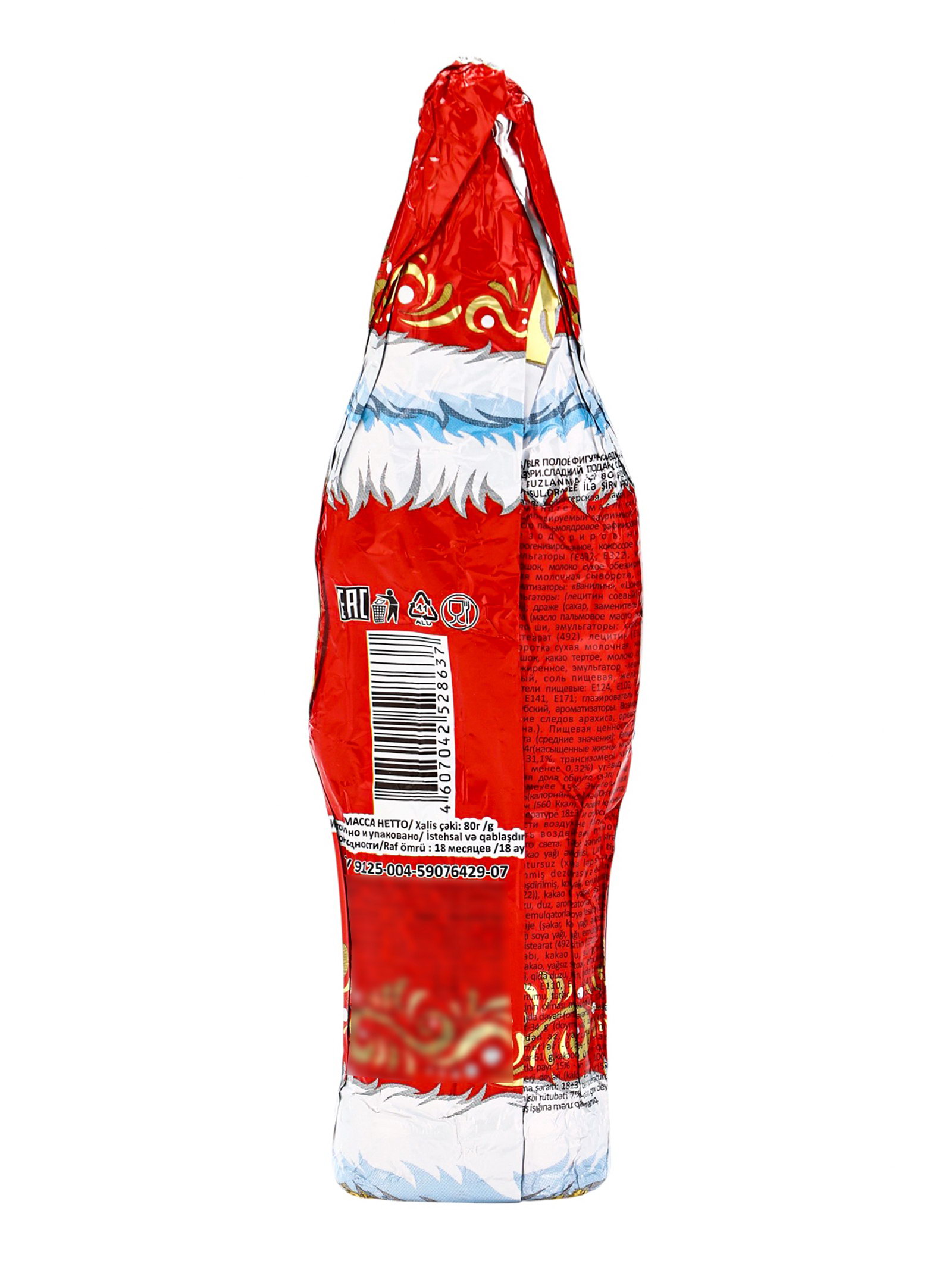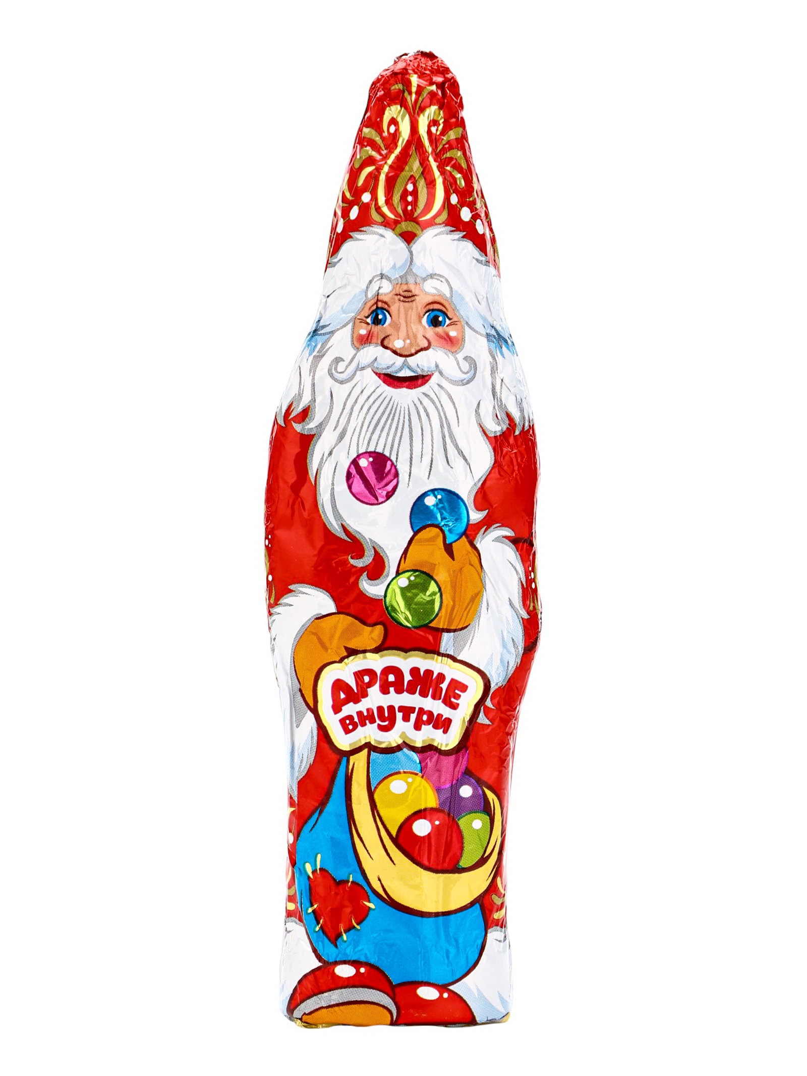 Фигурный шоколад "Дед мороз", с драже внутри, кондитерская глазурь, 80 г, Россия