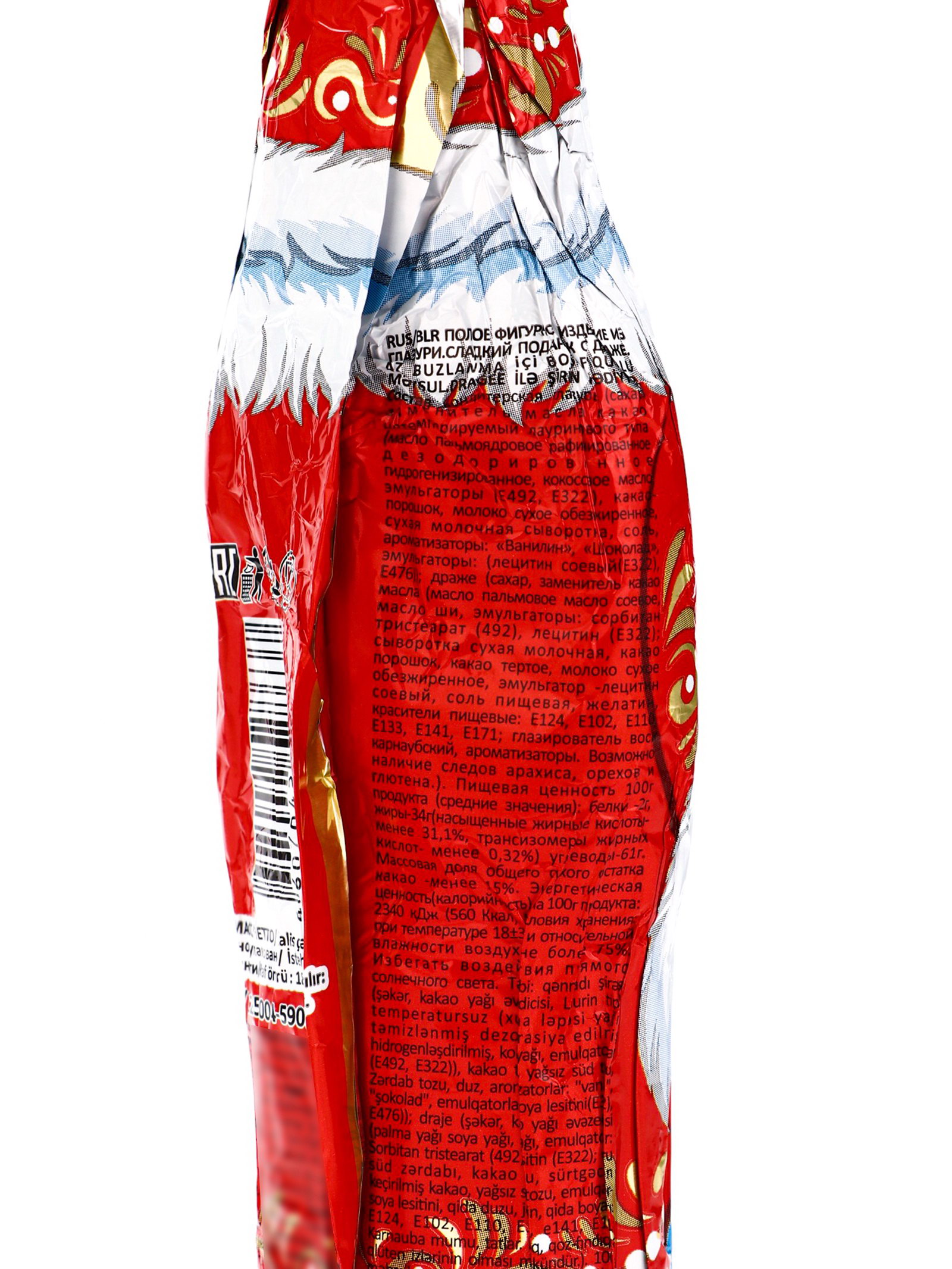 Тематика праздника: Новый год, Рождество Новогодняя коллекция: Новый год, Рождество Размер упаковки: 5.5 x 3.5 x 18.5 см. Продукты: Да tnved: 1806909000 Температурное ограничение: Нет Белки, г: 2 Энергетическая ценность, ккал: 560 Углеводы, г: 61 Жиры, г: 34 Форма: Фигурка Вес нетто, г: 80 Вид шоколада: Кондитерская глазурь Добавки: С драже Символ года: Нет Новогоднее настроение в сладкой форме Шоколадная фигурка Деда Мороза с хрустящим драже создаёт атмосферу праздника. Фигурка из кондитерской глазури становится съедобным украшением ёлки или сладким подарком для детей и взрослых.