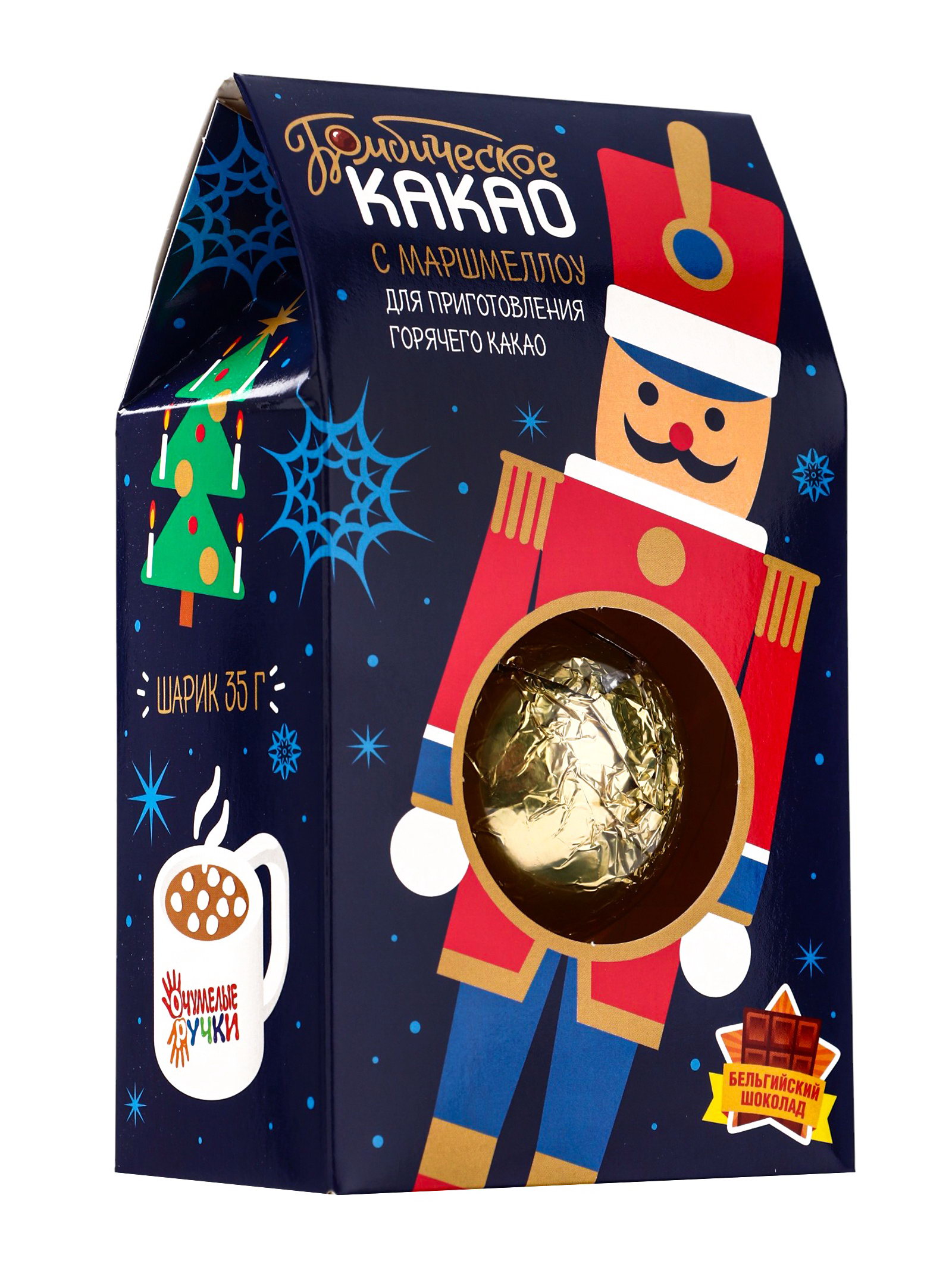 Шоколадная бомбочка с маршмеллоу "Бомбическое какао: новогодний щелкунчик", 1 шт., 35 г, Бомбическое какао, Россия