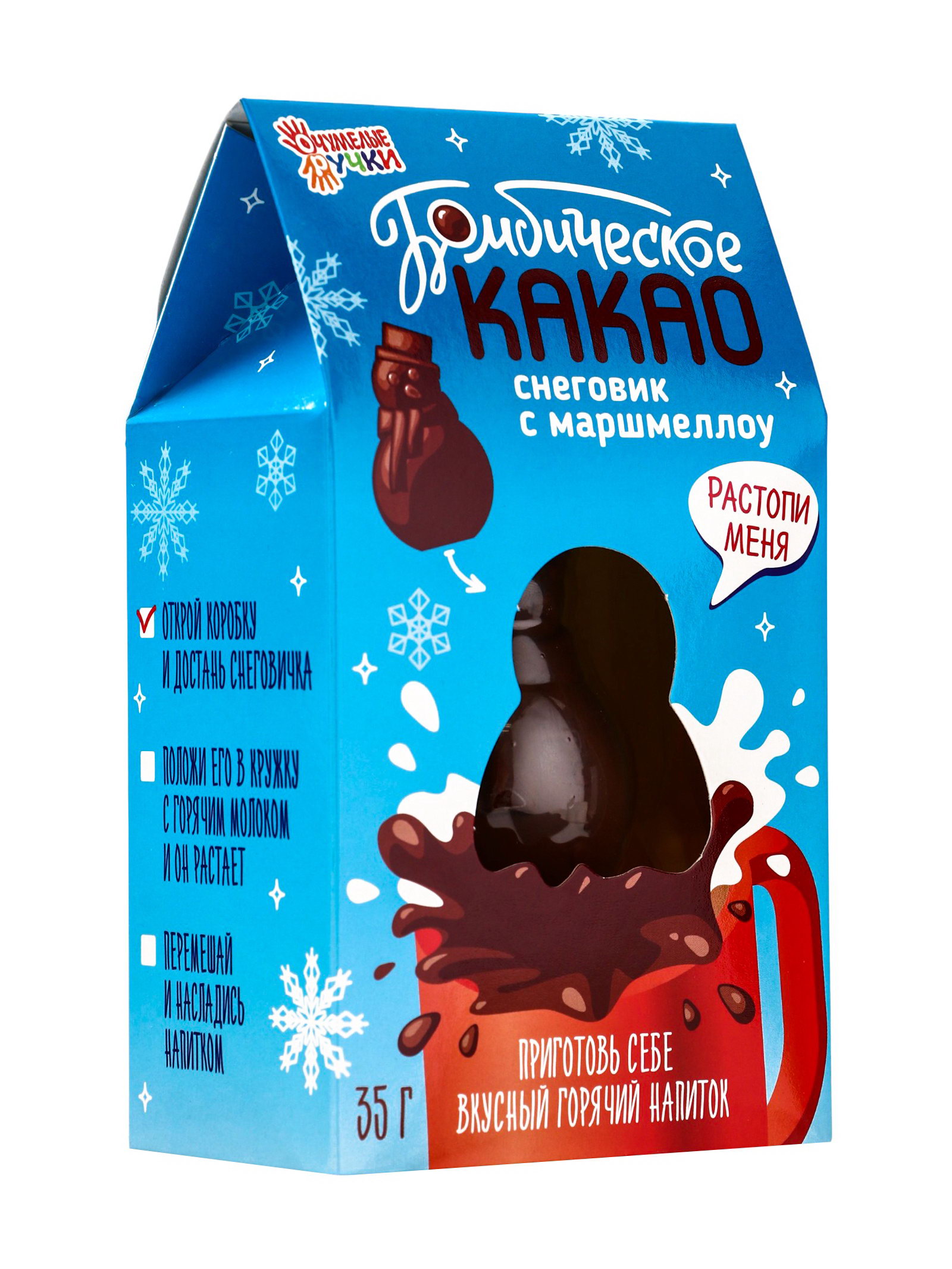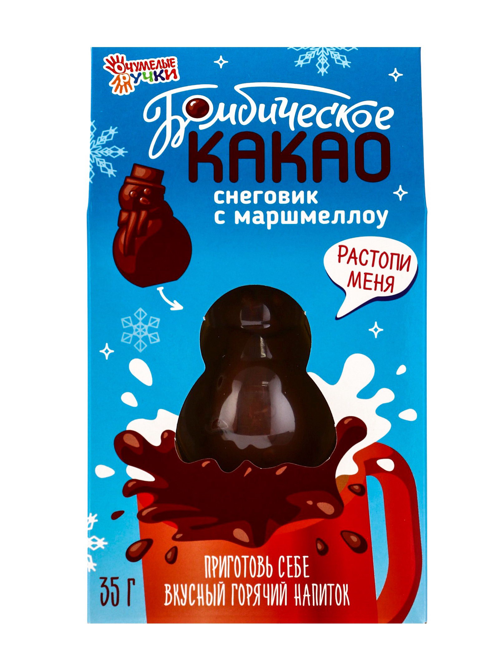 Шоколадная бомбочка с маршмеллоу "Бомбическое какао: снеговик", 35 г, Бомбическое какао, Россия