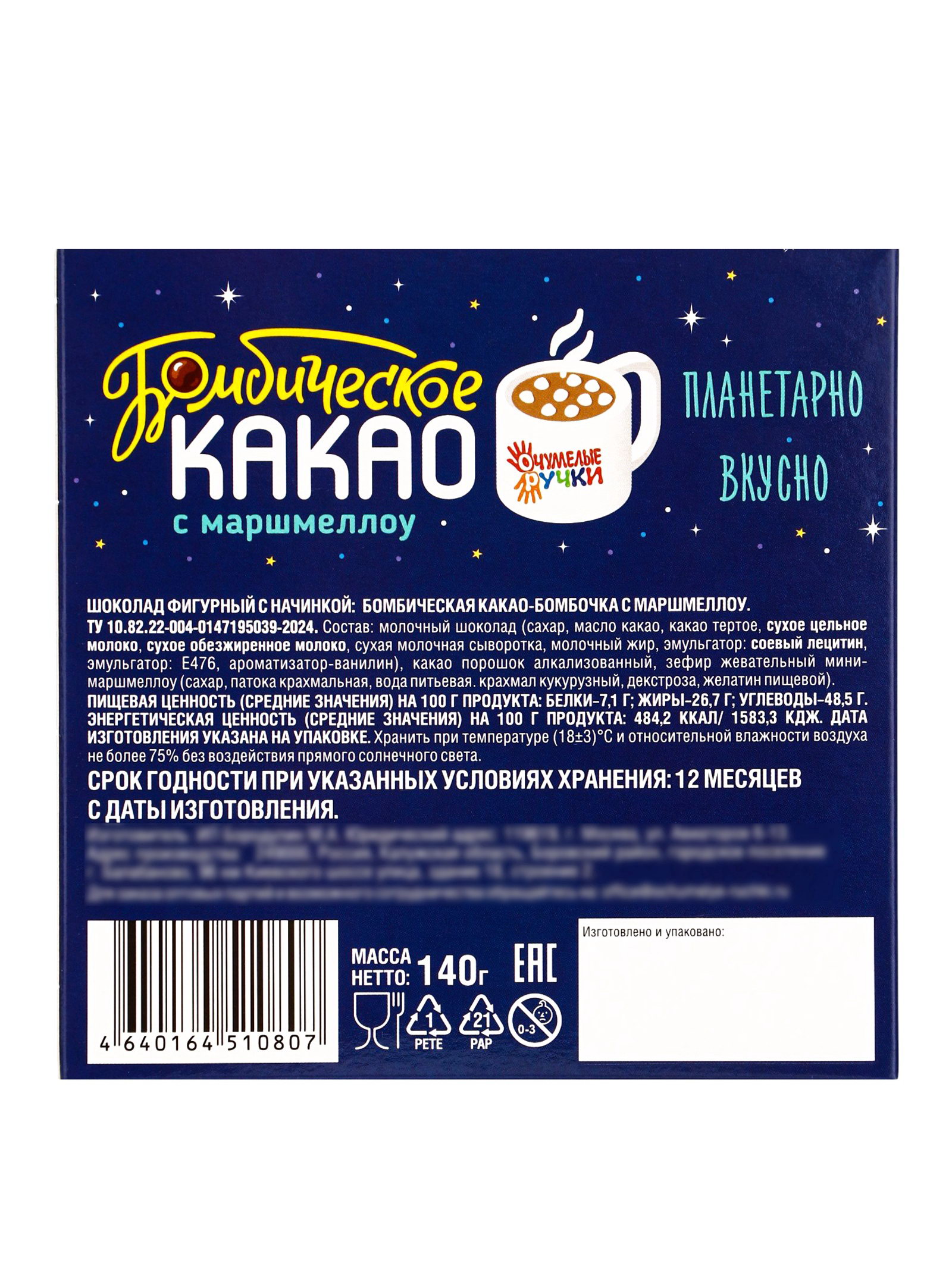 Шоколадная бомбочка с маршмеллоу "Космос", 4 шт.x35 г, 140 г, Бомбическое какао, Россия