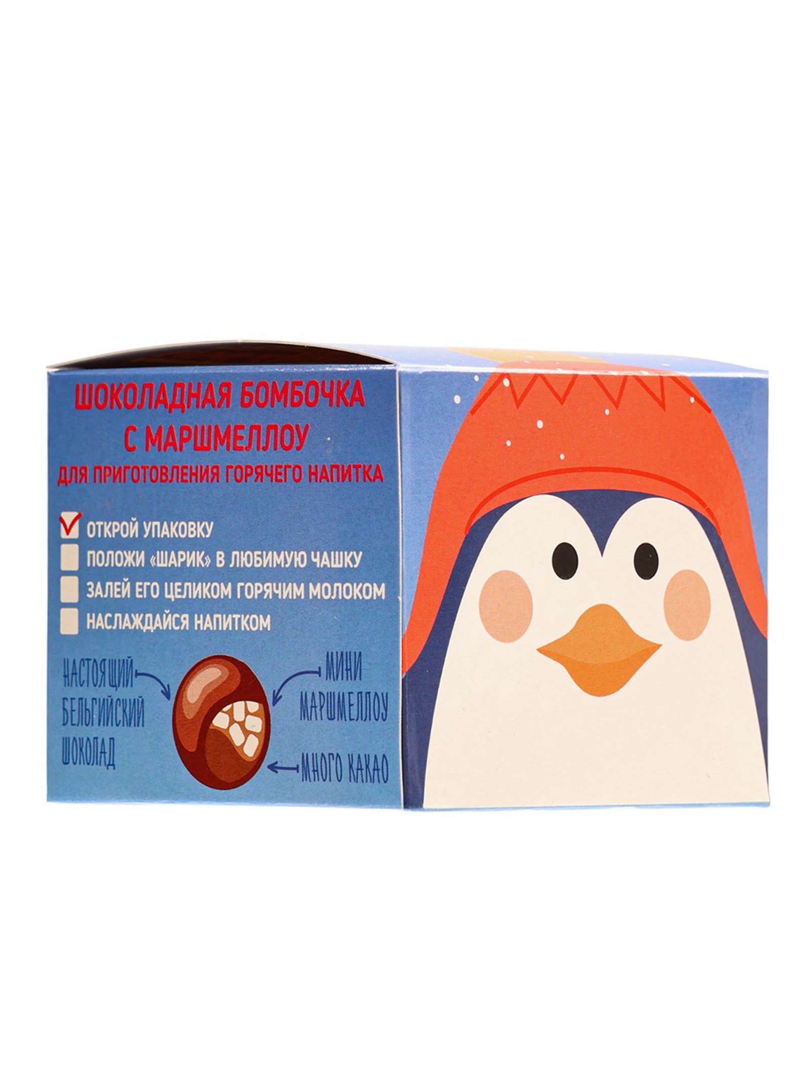 Шоколадная бомбочка с маршмеллоу "Бомбическое какао: пингвин", 35 г, Бомбическое какао, Россия