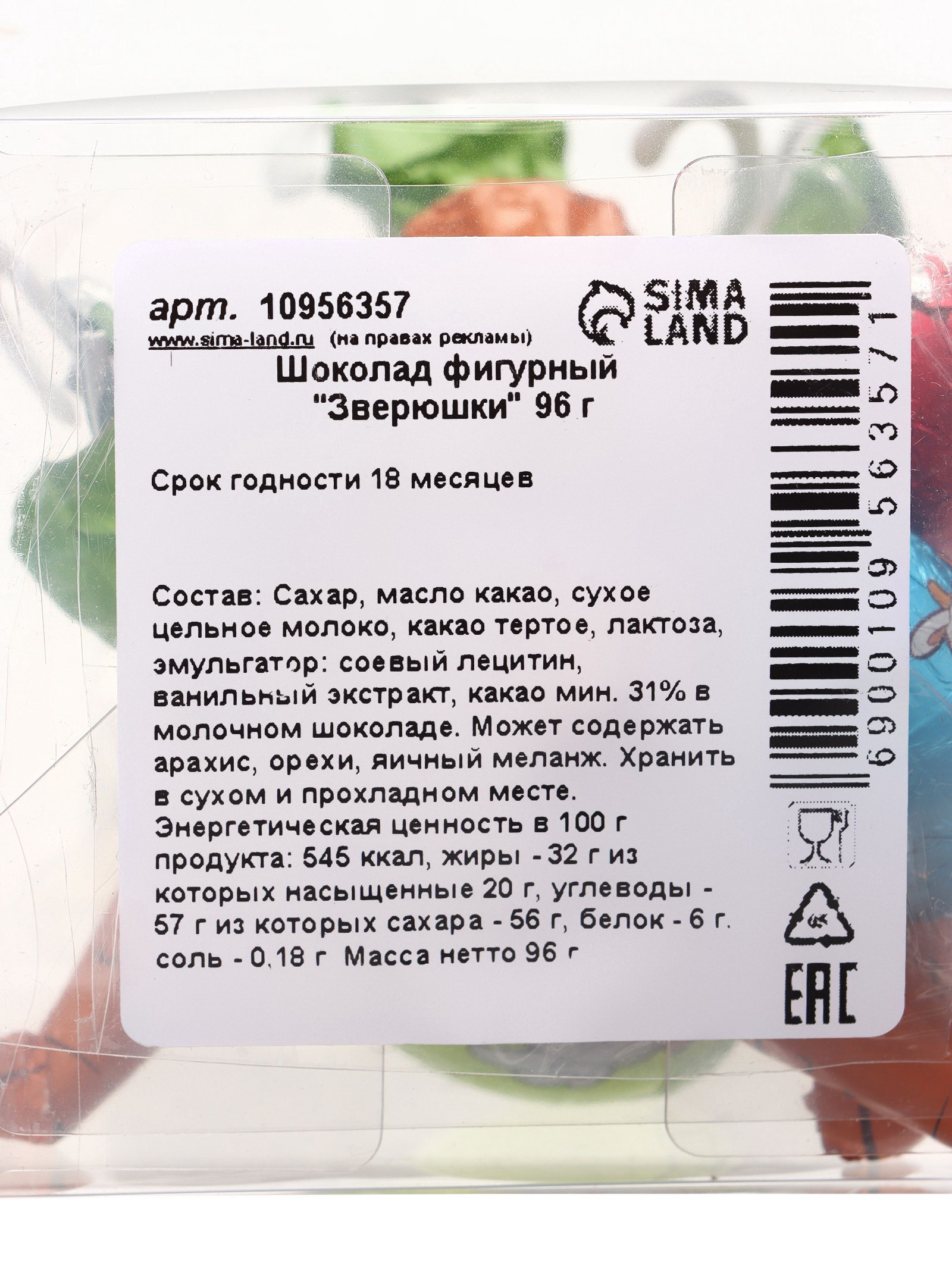 Шоколад фигурный "Зверюшки" 96 г, Франция