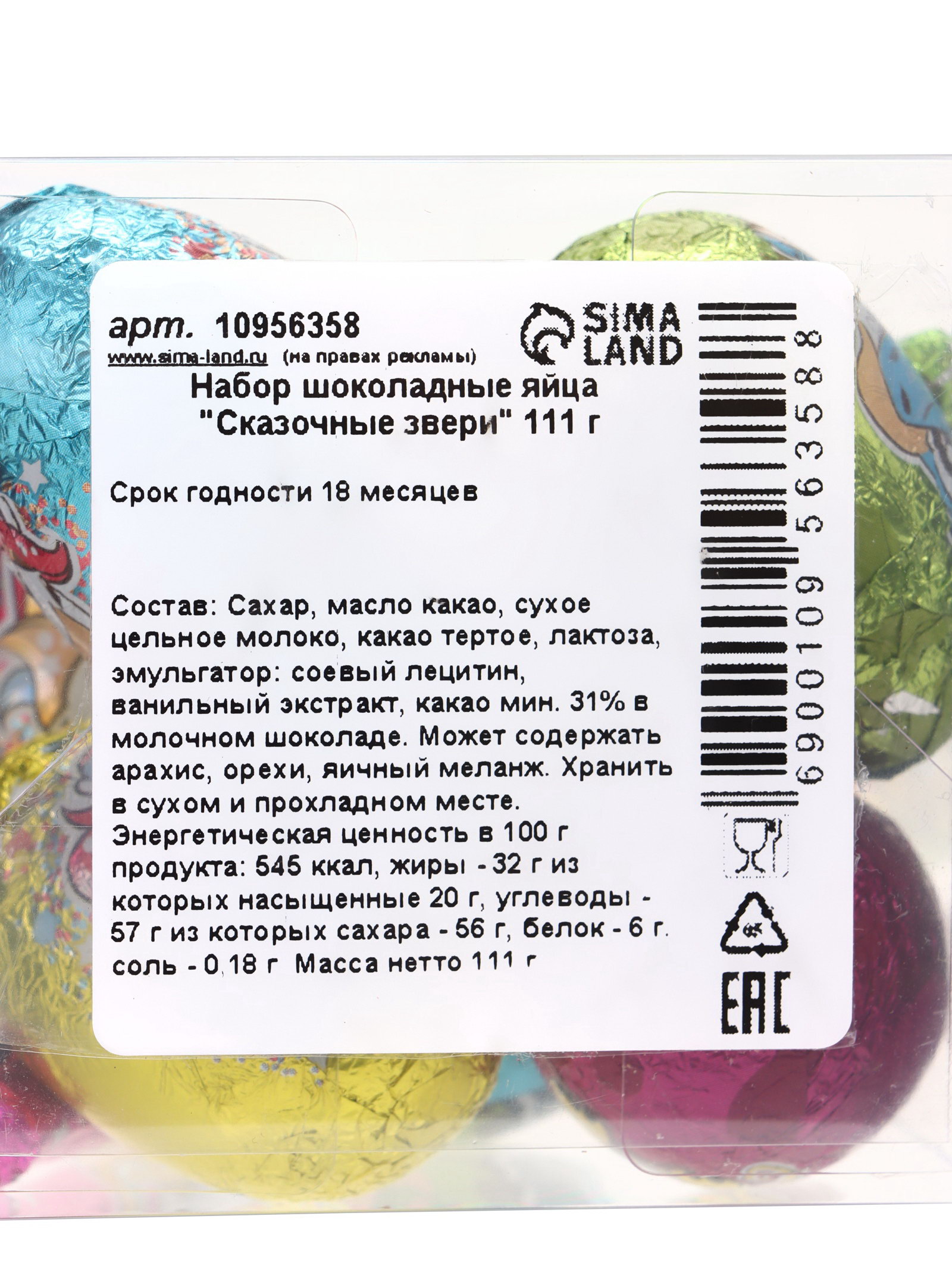 Яйца шоколадные "Сказочные звери", набор, 111 г, Франция
