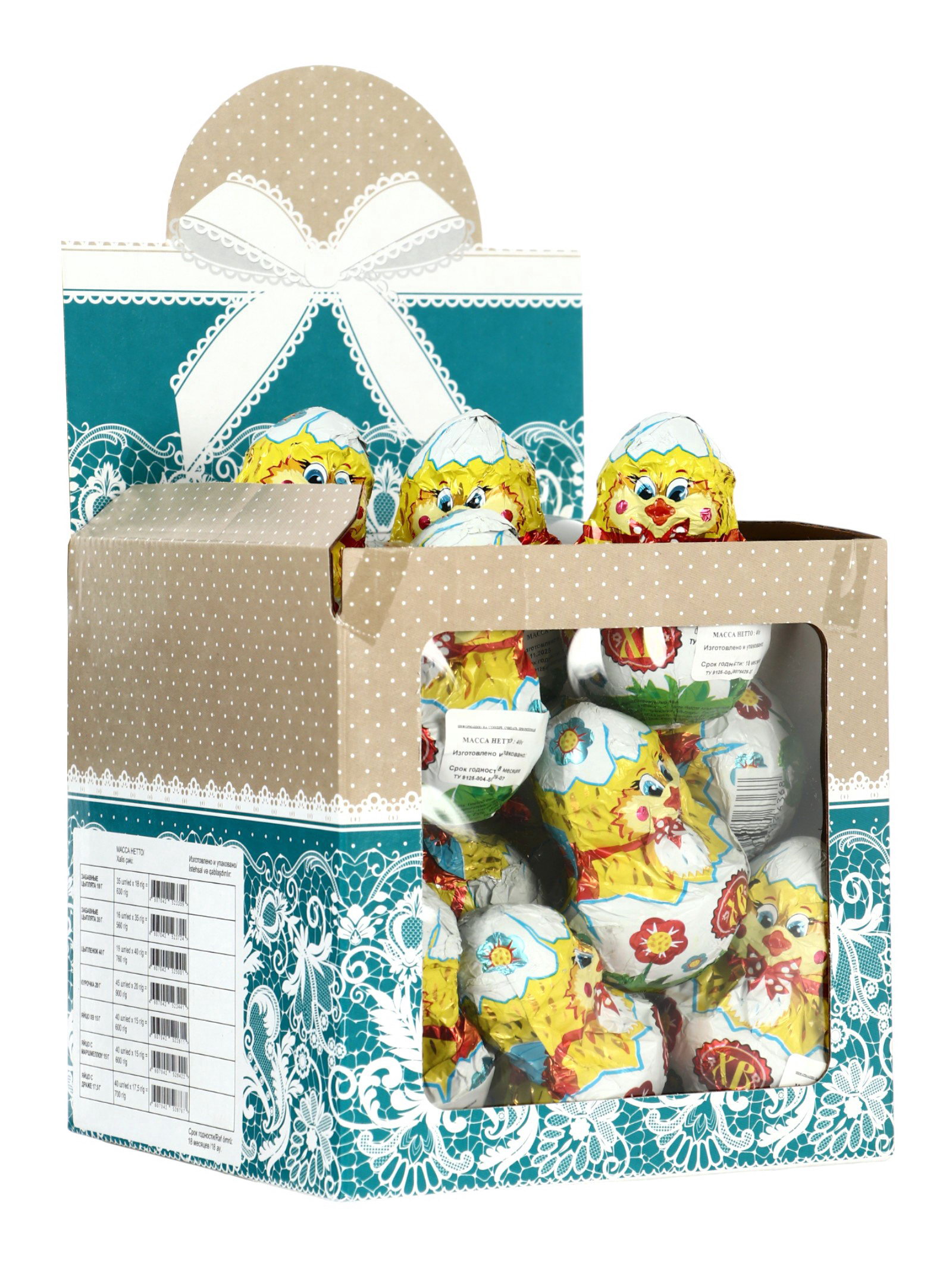 Размер упаковки: 6 x 8 x 6 см. tnved: 1806201000 Продукты: Да Температурное ограничение: Нет Вес нетто, г: 40 Тематика праздника: Пасха Вид шоколада: Кондитерская глазурь Эта фигурка создана для тех, кто ценит в празднике трогательные детали. Цыплёнок из кондитерской глазури весом 40 грамм это символ новой жизни и весеннего обновления, который можно вручить как самостоятельный небольшой подарок или использовать как украшение пасхальной композиции. Описание изделия