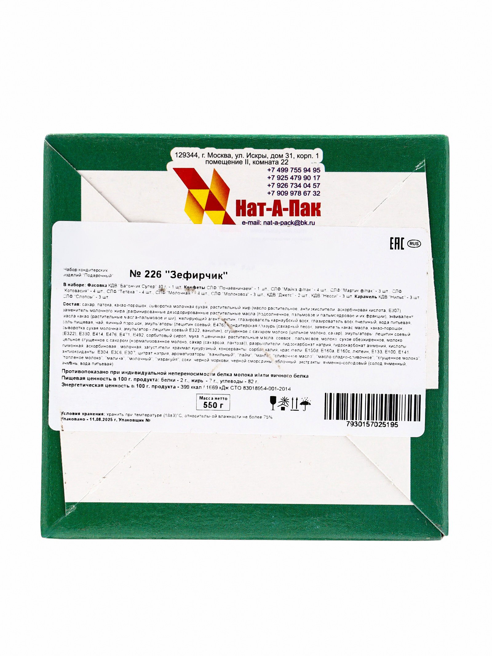 Тематика праздника: Новый год, Рождество Новогодняя коллекция: Новый год, Рождество, Символ года 2026 Размер упаковки: 9.5 x 24.5 x 9.5 см. tnved: 1806201000 Продукты: Да Температурное ограничение: Нет Составляющие набора: Конфеты Вес нетто, г: 550 Цвет: МИКС В наборе, шт.: 35 Вид упаковки: Картонная упаковка Подарочный набор мягких сладостей "Зефирчик" станет отличным дополнением к праздничному столу в Новый год и Рождество. Разнообразие вкусов и нежная текстура этих конфет создают атмосферу уюта и радости, объединяя близких за общим праздником. Особенности
