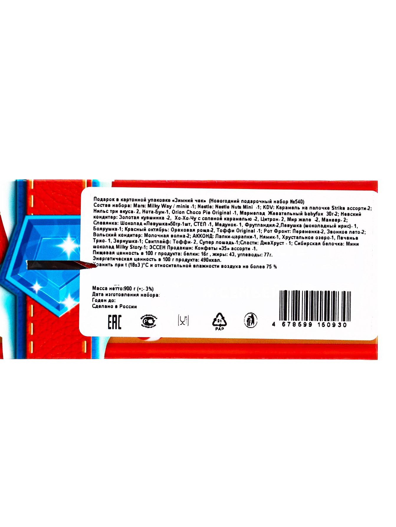 Сладкий новогодний подарок "Зимний чек", с игрой, детский, 900 г, Россия