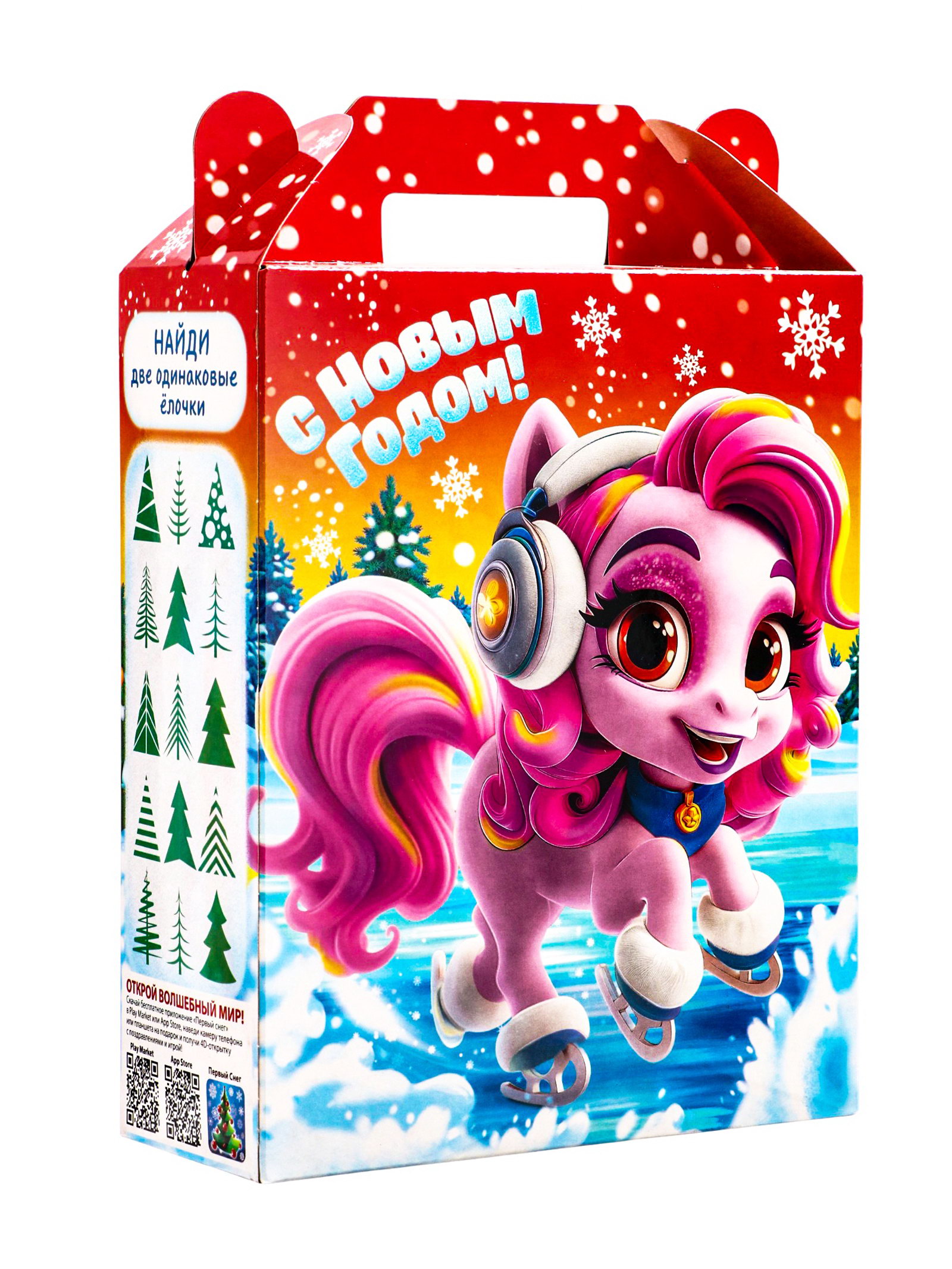 Новогодняя коллекция: Новый год, Рождество, Символ года 2026 Тематика праздника: Новый год, Рождество Размер упаковки: 17 x 7 x 25 см. tnved: 1806201000 В наборе, шт.: 38 Составляющие набора: Конфеты Вид упаковки: Картонная упаковка Продукты: Да Вес нетто, г: 700 Цвет: МИКС Температурное ограничение: Нет Новогодний подарок с лошадками "Марк и Няша" создан для детей, которые любят этих добрых персонажей. Эта коробка со сладостями становится продолжением знакомого мира, где живут две маленькие лошадки и их друзья. Что найдёте внутри
