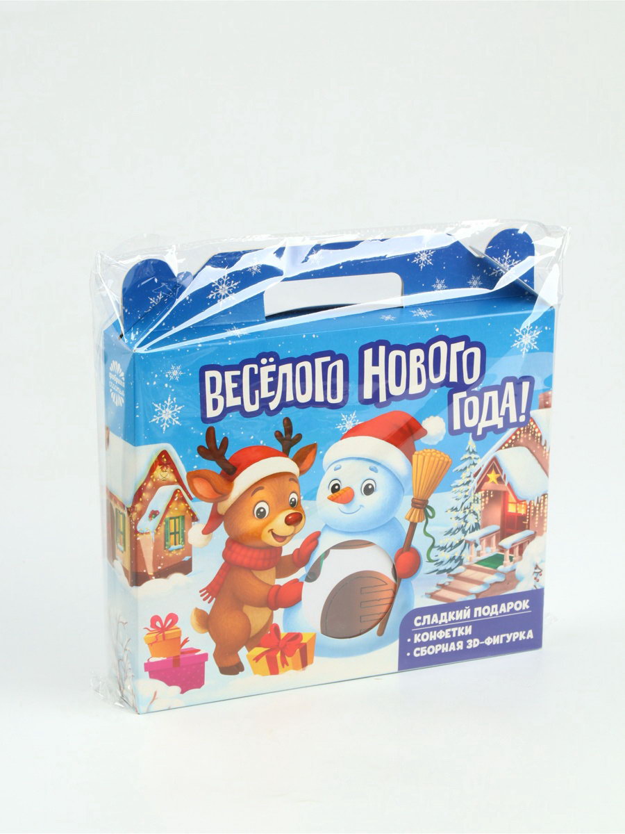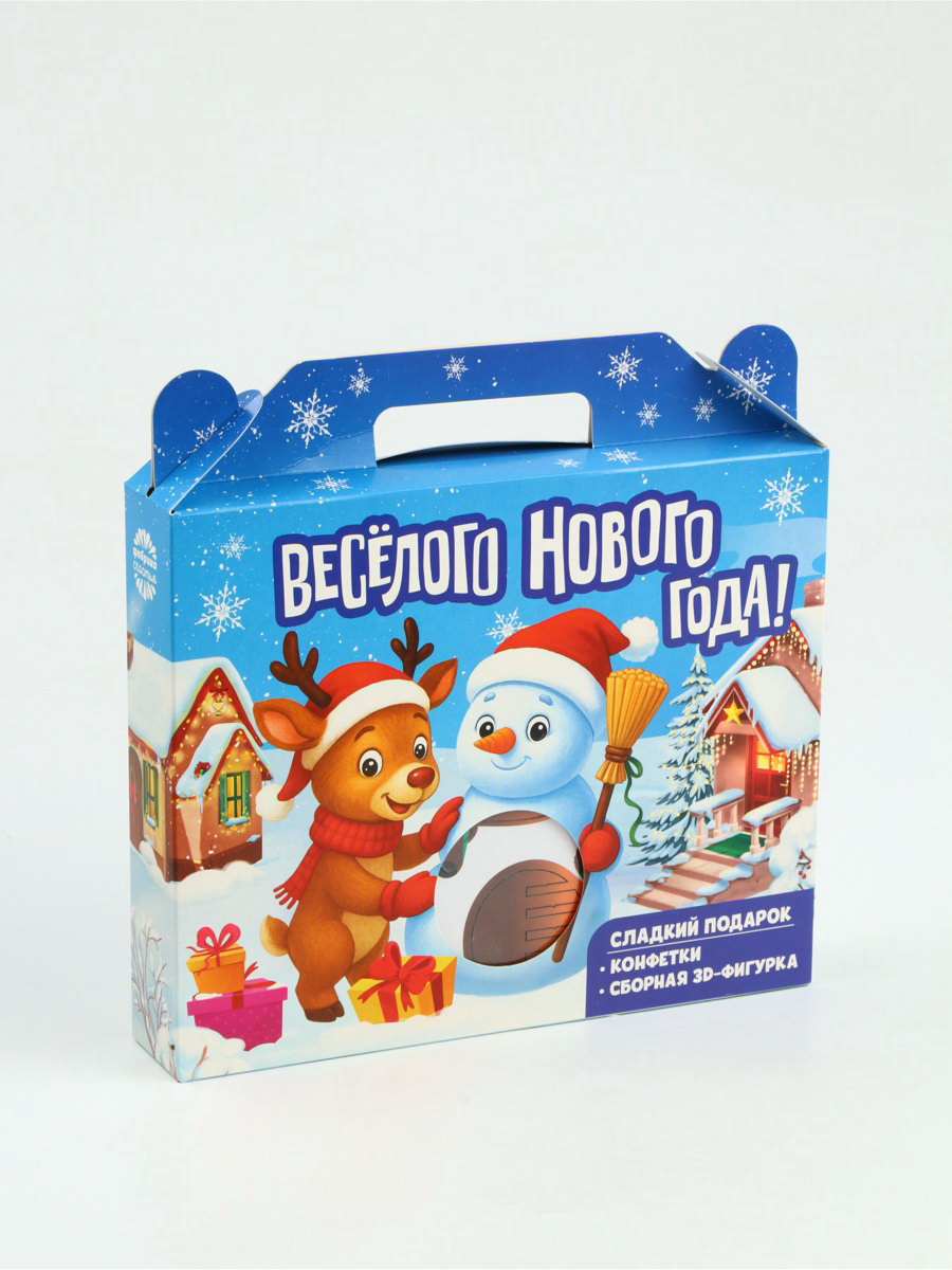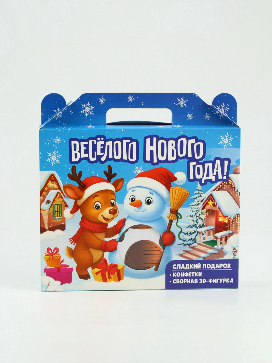 Сладкий детский новогодний подарок "Весёлого нового года", конфеты 300 г, 3Д конструктор, Фабрика счастья, Россия