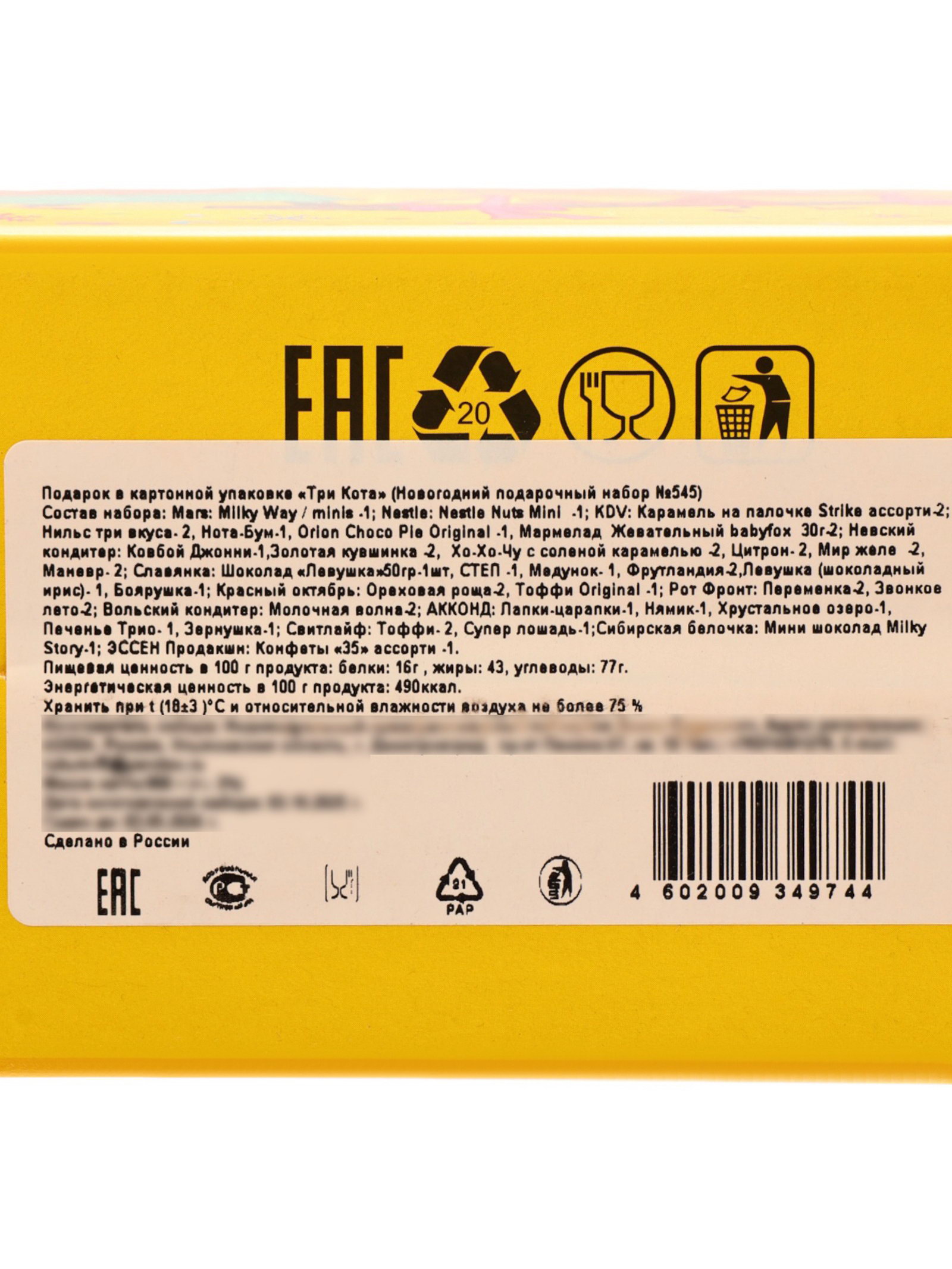Сладкий новогодний подарок "Три кота, b34", детский, 900 г, Россия