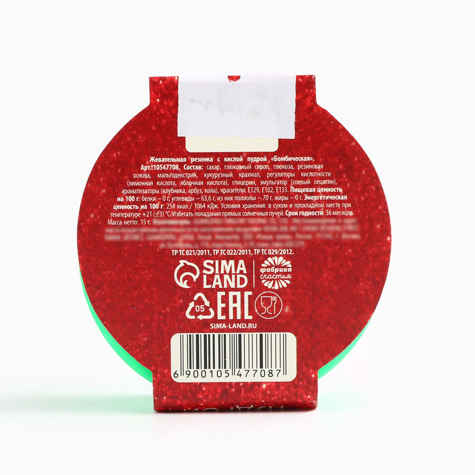 Запрет реализации по сегментам: 00000000266, 00000000593 Размер упаковки: 6 x 2 x 6 см. Темпер. ограничение НЕ ВЫШЕ ℃: +25 Вес нетто, г: 15 С жидким центром: Нет Форма: Шар Вкус: Ассорти Тематика праздника: Новый год Тематика праздника: Новый год tnved: 1704101000 Индивидуальная упаковка: Нет Символ года: Нет Новогодняя коллекция: Новый год При оформление заказа, просим запрашивать актуальные сроки годности у менеджераСостав: сахар, глюкозный сироп, глюкоза, резиновая основа, кукурузный крахмал, регуляторы кислотности (лимонная кислота, яблочная кислота), глицерин, эмульгатор (соевый лецитин), ароматизаторы ( клубника, арбуз, кола), красители: Е129, Е102, Е133. Срок годности: 36 месяцев Масса нетто: 15 гр | ||