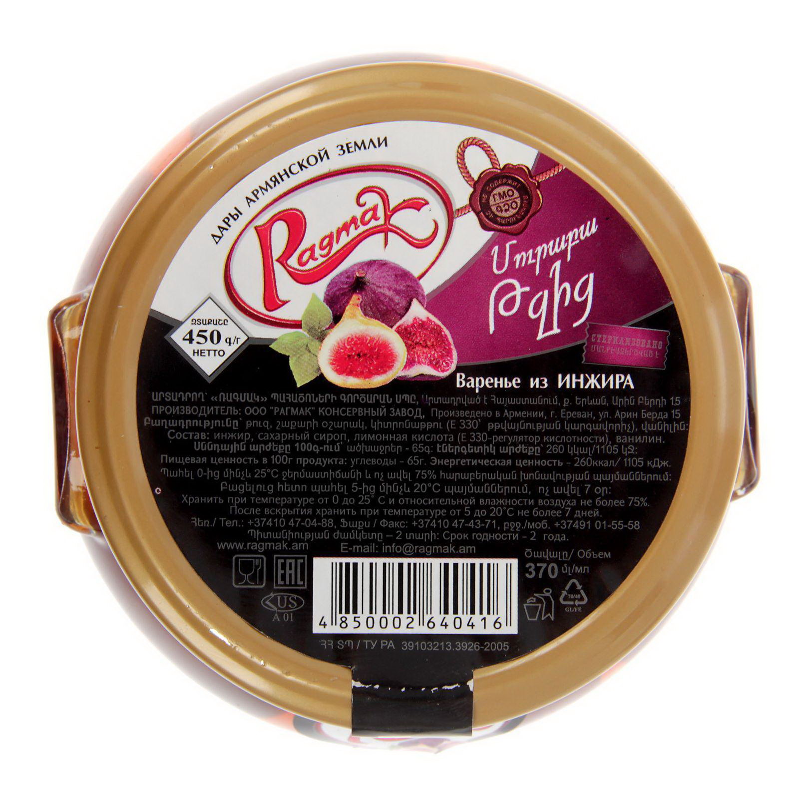 Варенье из инжира ТМ 450 мл, Ragmak, Армения