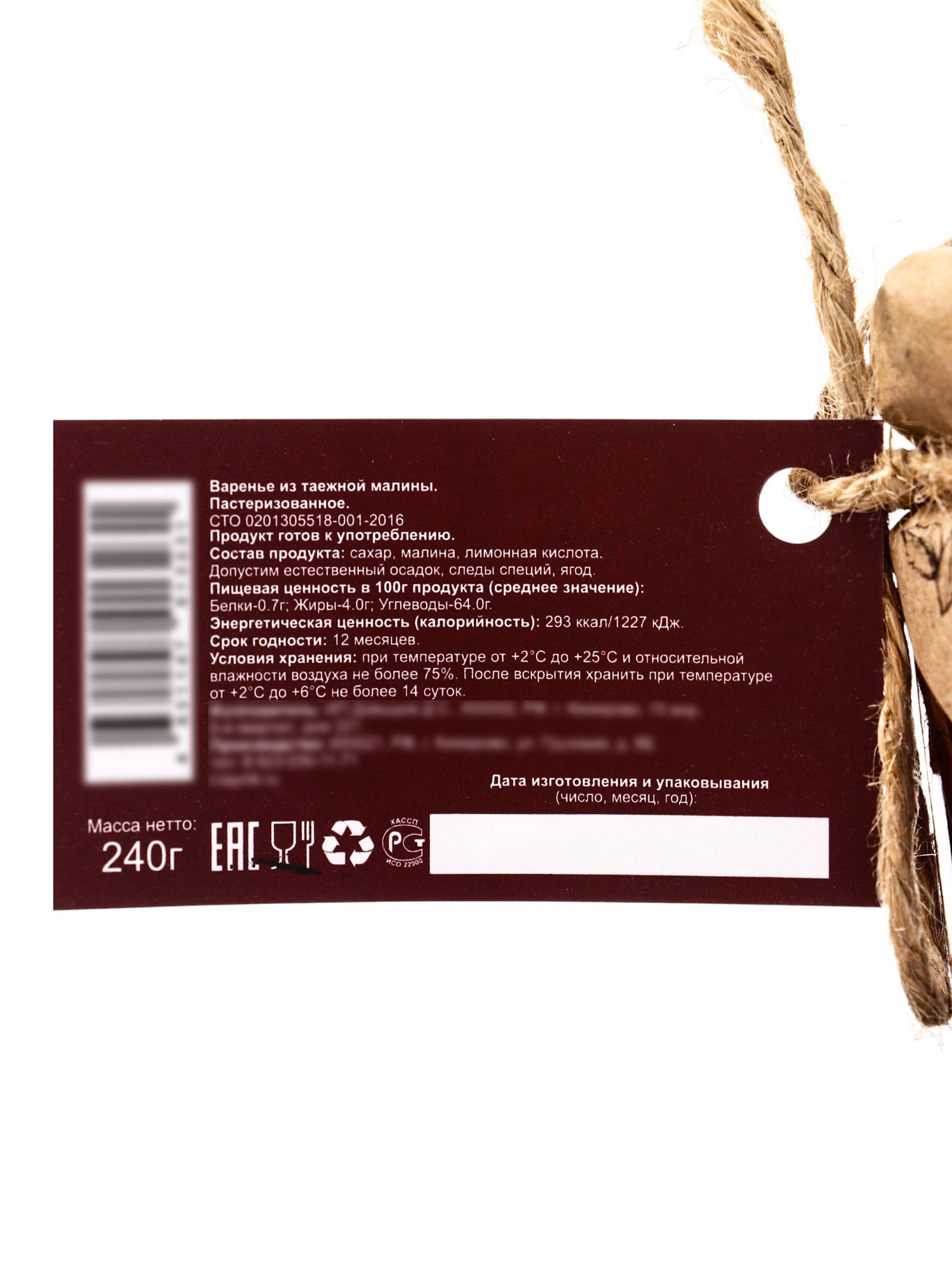 Варенье из таёжной малины, 260 г, Таёжный тайник, Россия