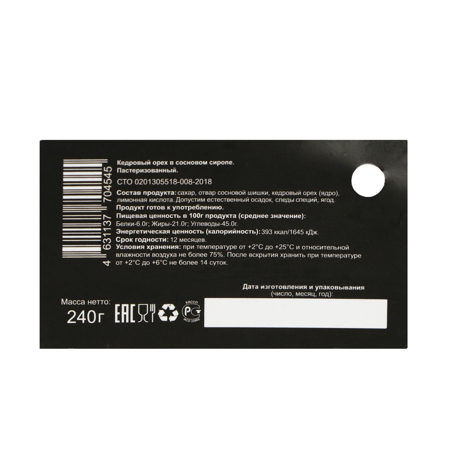 Кедровый орех в сосновом сиропе, 240 г, Таёжный тайник, Россия