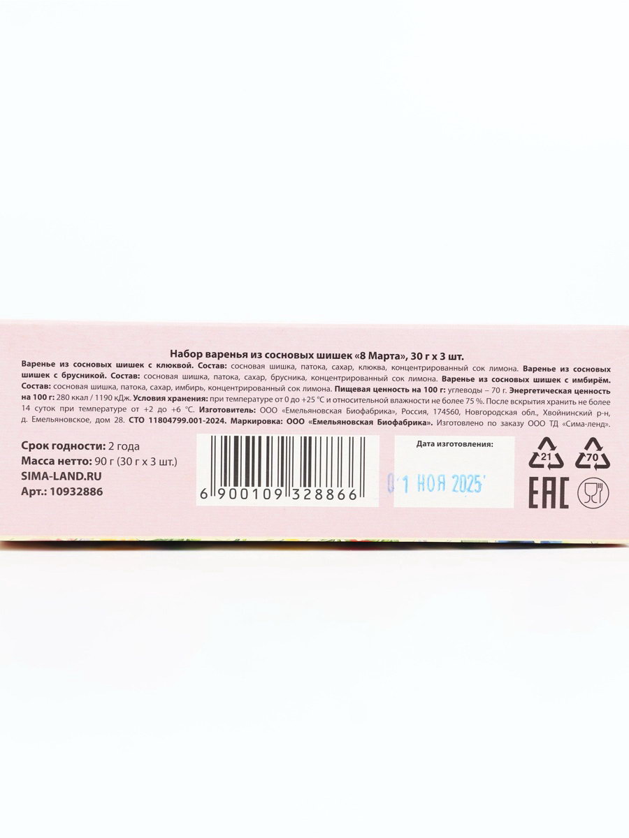 Варенье с сосновыми шишками "8 марта. Нежная акварель", набор 3 шт. x 30 г, Доброе здоровье, Россия