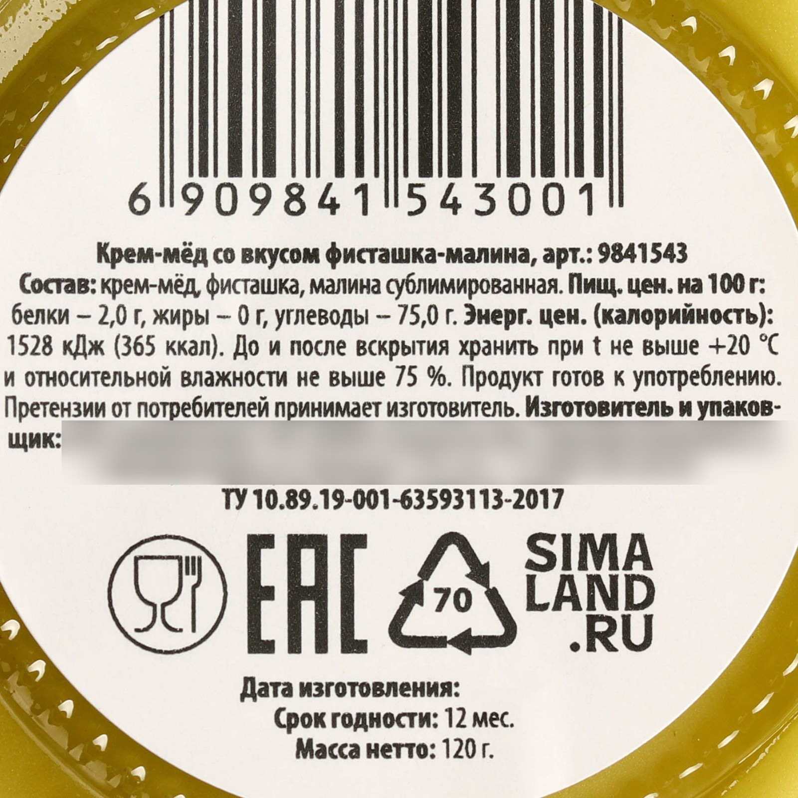 Мёд кремовый "С новым годом", со вкусом фисташка-малина, 120 г, Фабрика счастья, Россия