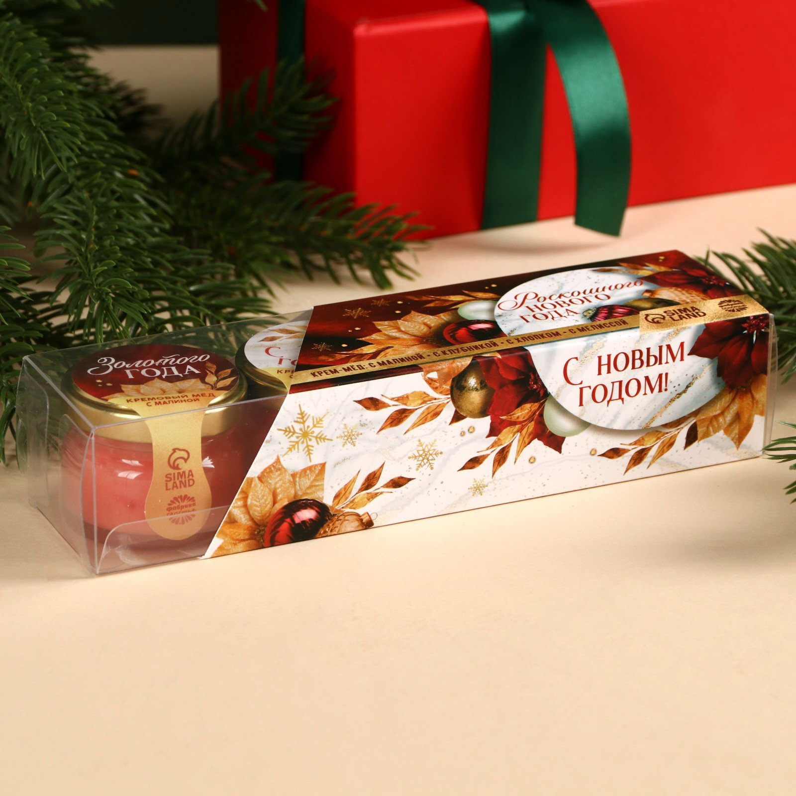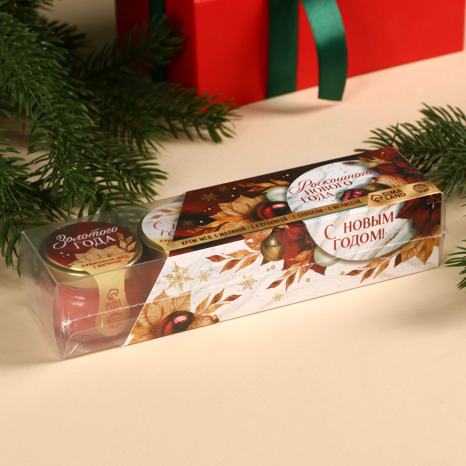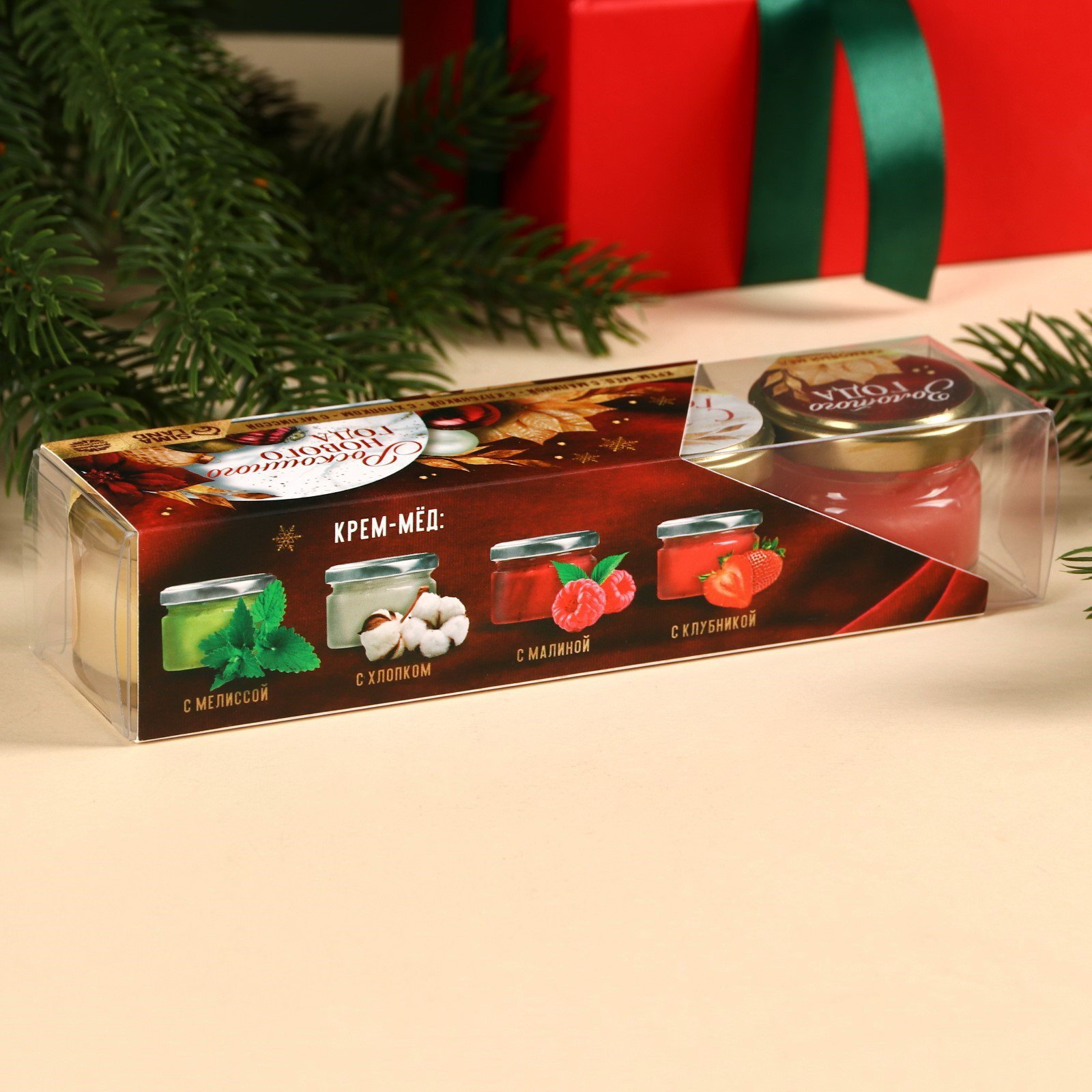 Подарочный набор: Крем - мёд "Роскошного года", вкус: мелисса, хлопок, малина, клубника, 120 г, Фабрика счастья, Россия