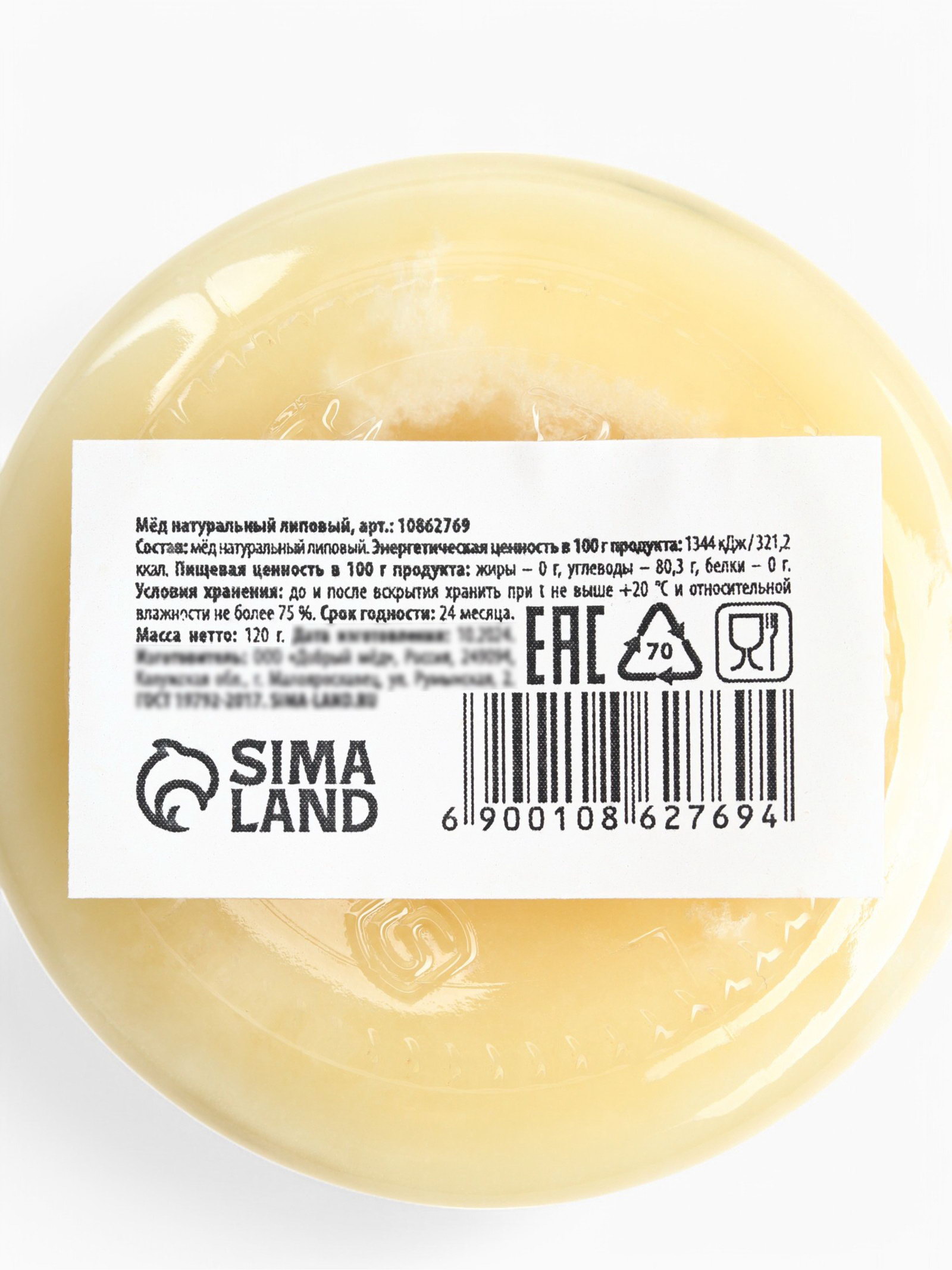 Мёд натуральный липовый, 120 гр, Доброе здоровье, Россия