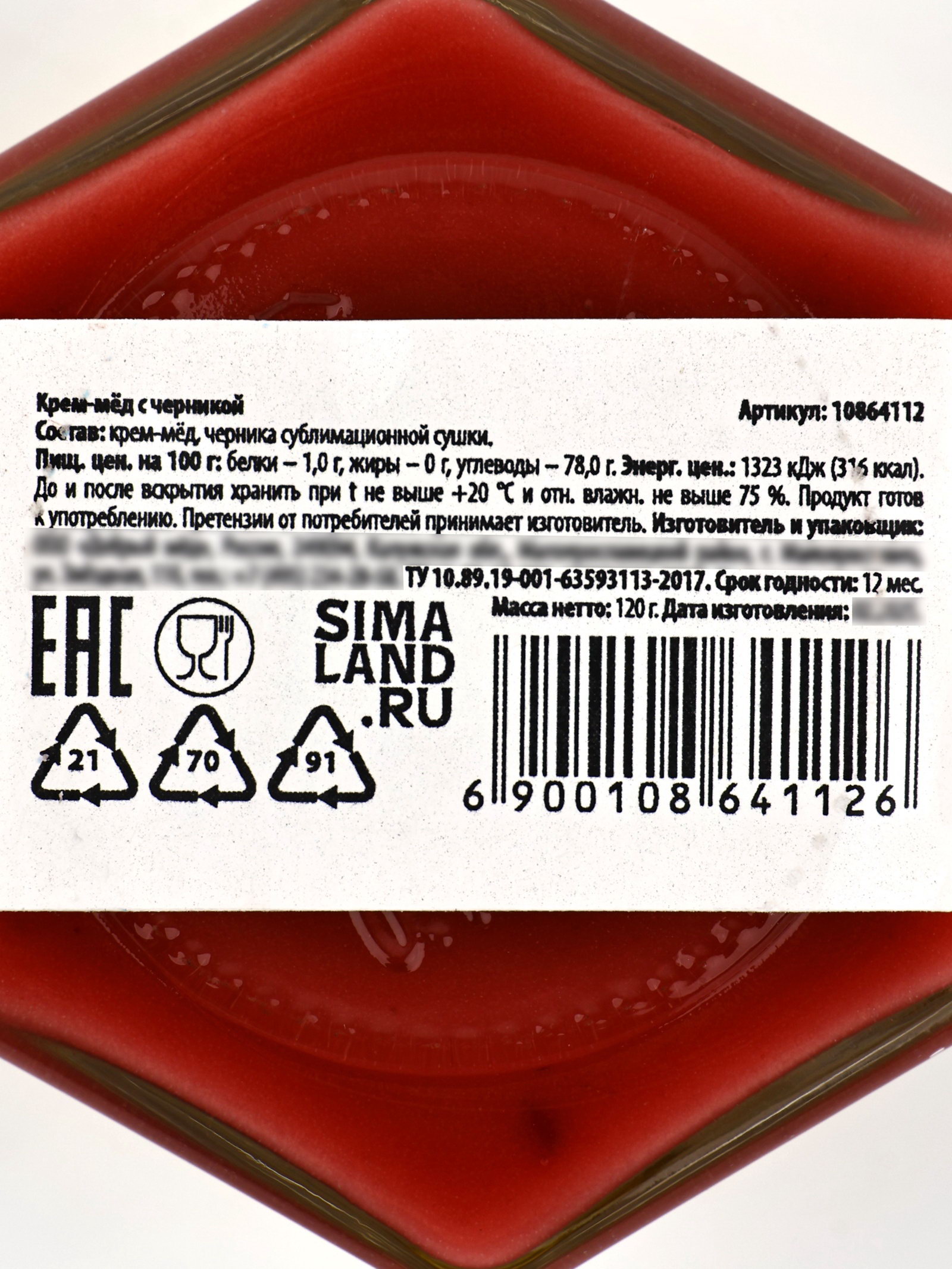 Размер упаковки: 6 x 6 x 7 см. Запрет реализации по сегментам: 00000000266 Вес нетто, г: 120 Вид: Крем-мёд Добавки: Черника Тематика праздника: 8 Марта Срок годности, мес: 12 tnved: 1702909400 tnved: 1702909400 ПРИ ОФОРМЛЕНИИ ЗАКАЗА, ПРОСИМ ЗАПРАШИВАТЬ АКТУАЛЬНЫЕ СРОКИ ГОДНОСТИ У МЕНЕДЖЕРА Состав: крем-мёд, черника сублимационной сушки. Масса нетто: 120 гр Срок годности: 12 месяцев. | ||