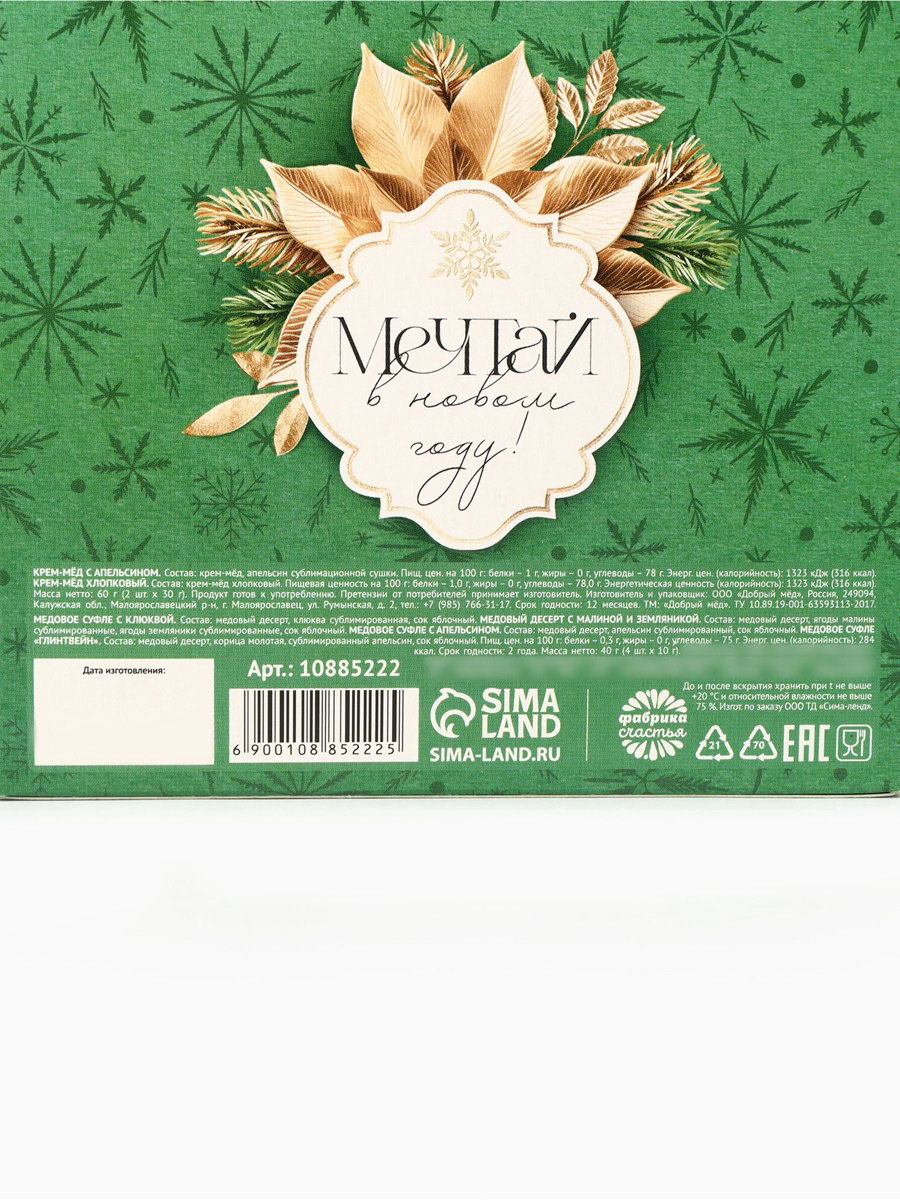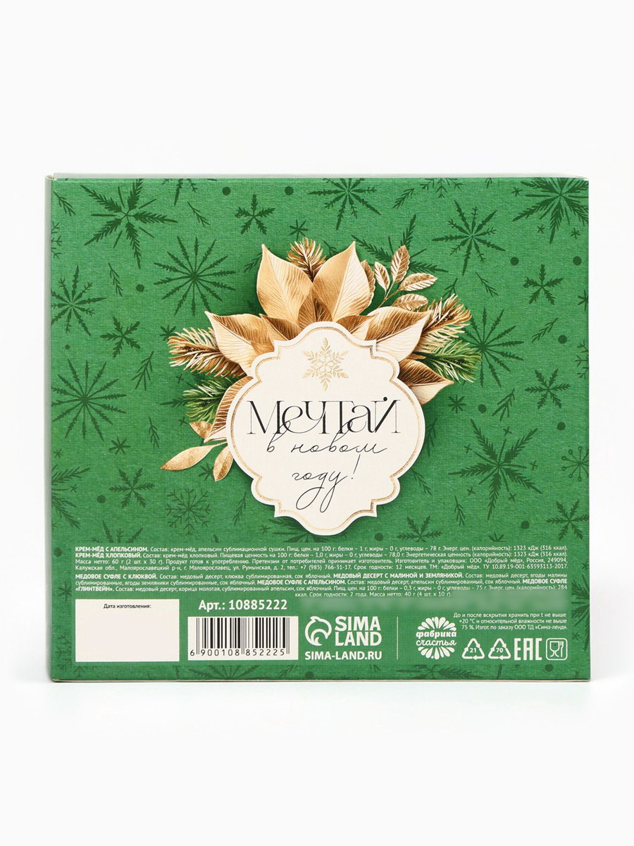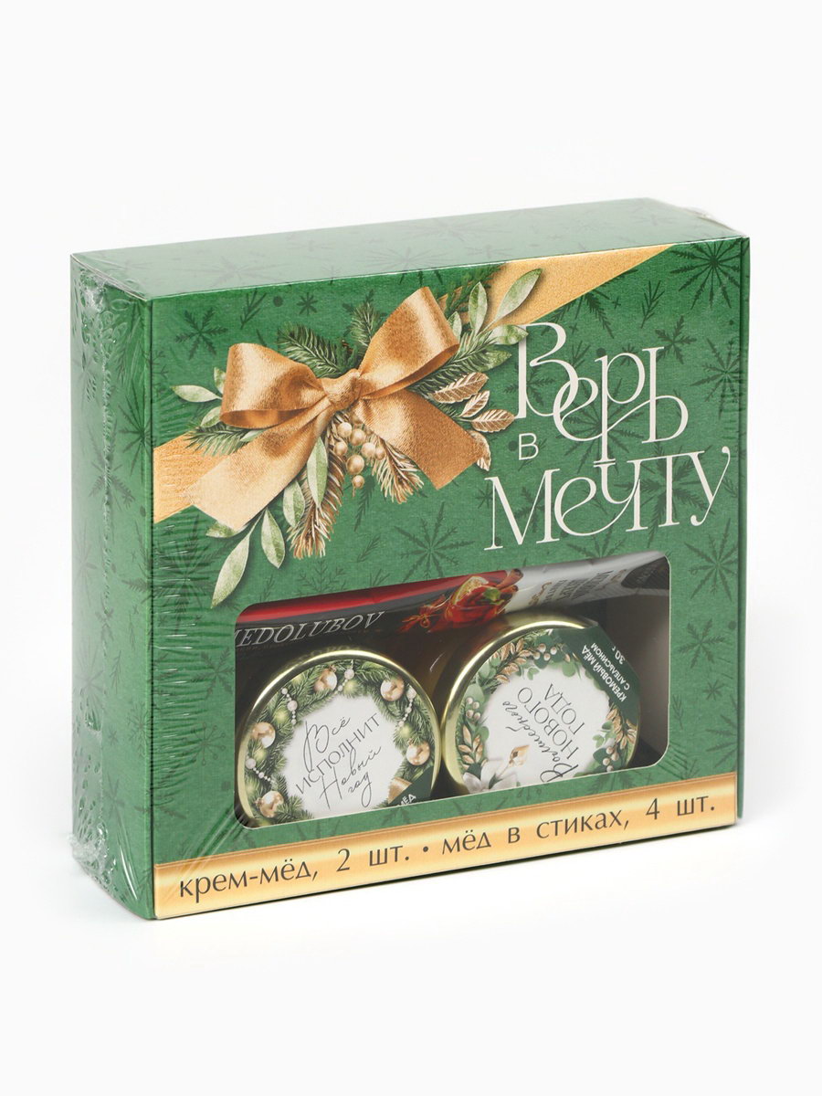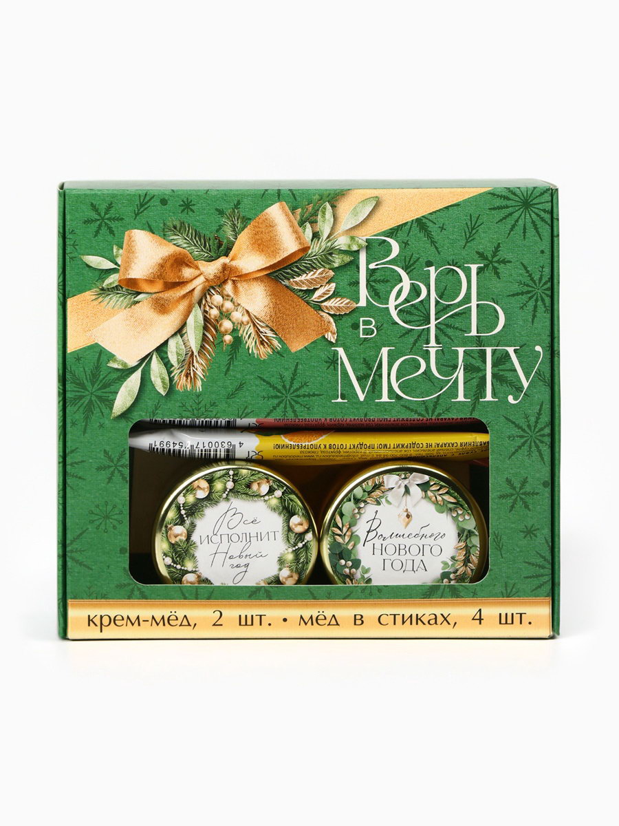 Подарочный набор новогодний "Верь в мечту": крем-мёд 2 шт., мёд в стиках 4 шт., Фабрика счастья, Россия