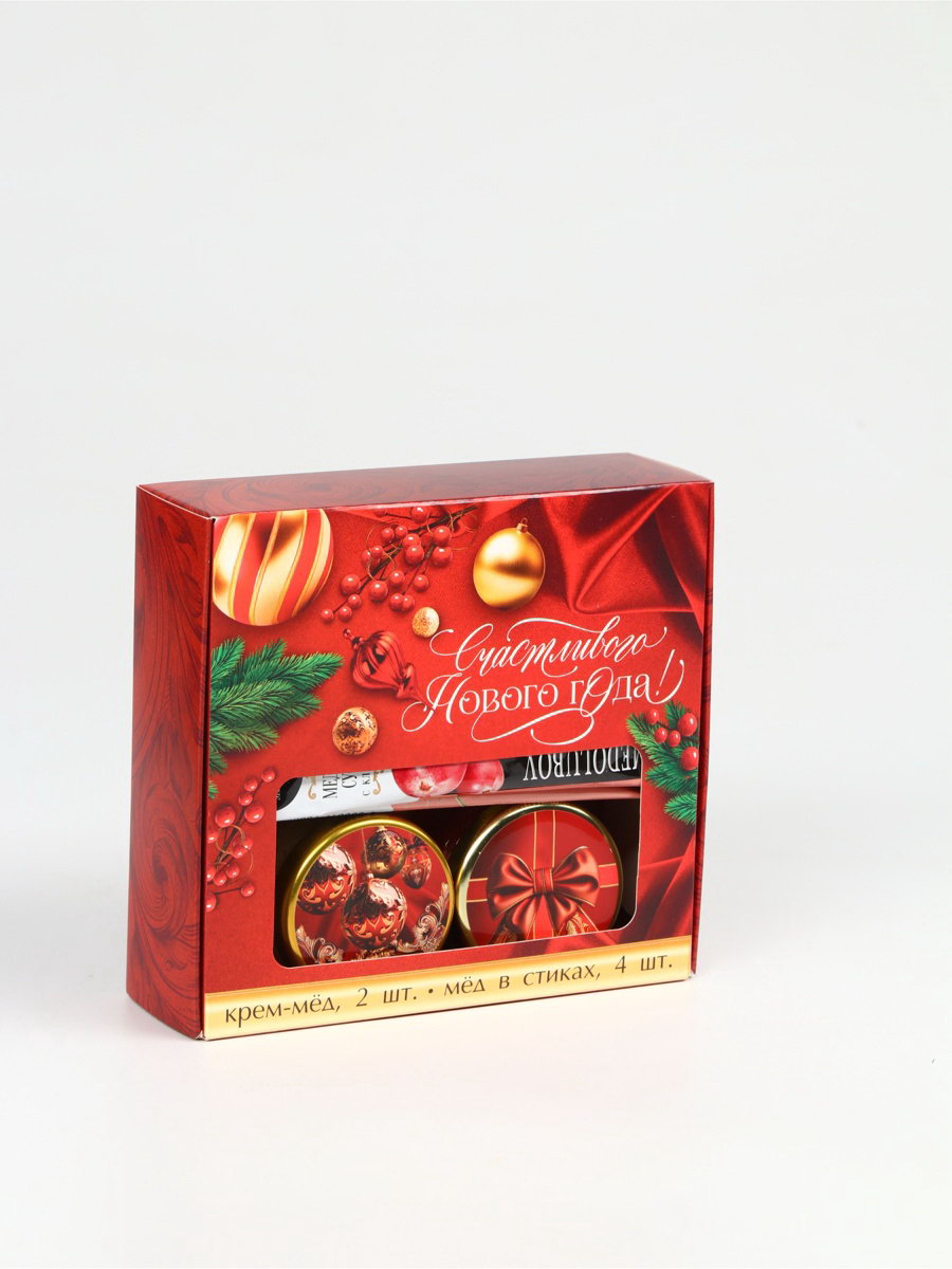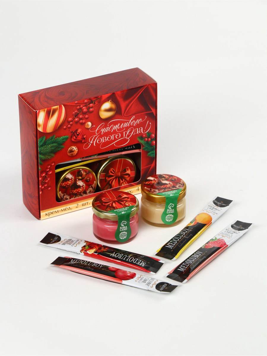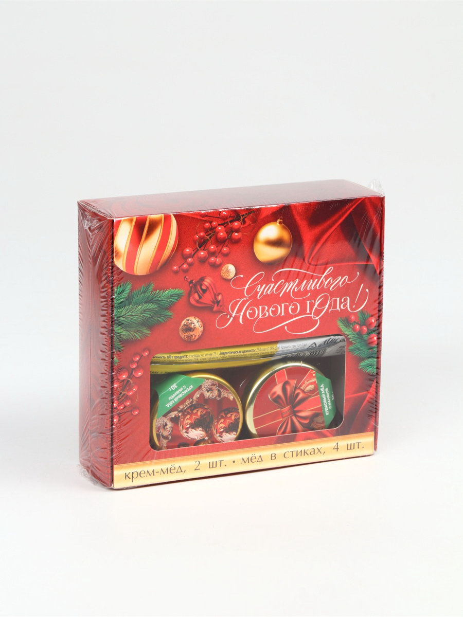 Подарочный набор "Счастливого нового года": крем-мёд 2 шт., мёд в стиках 4 шт., Фабрика счастья, Россия